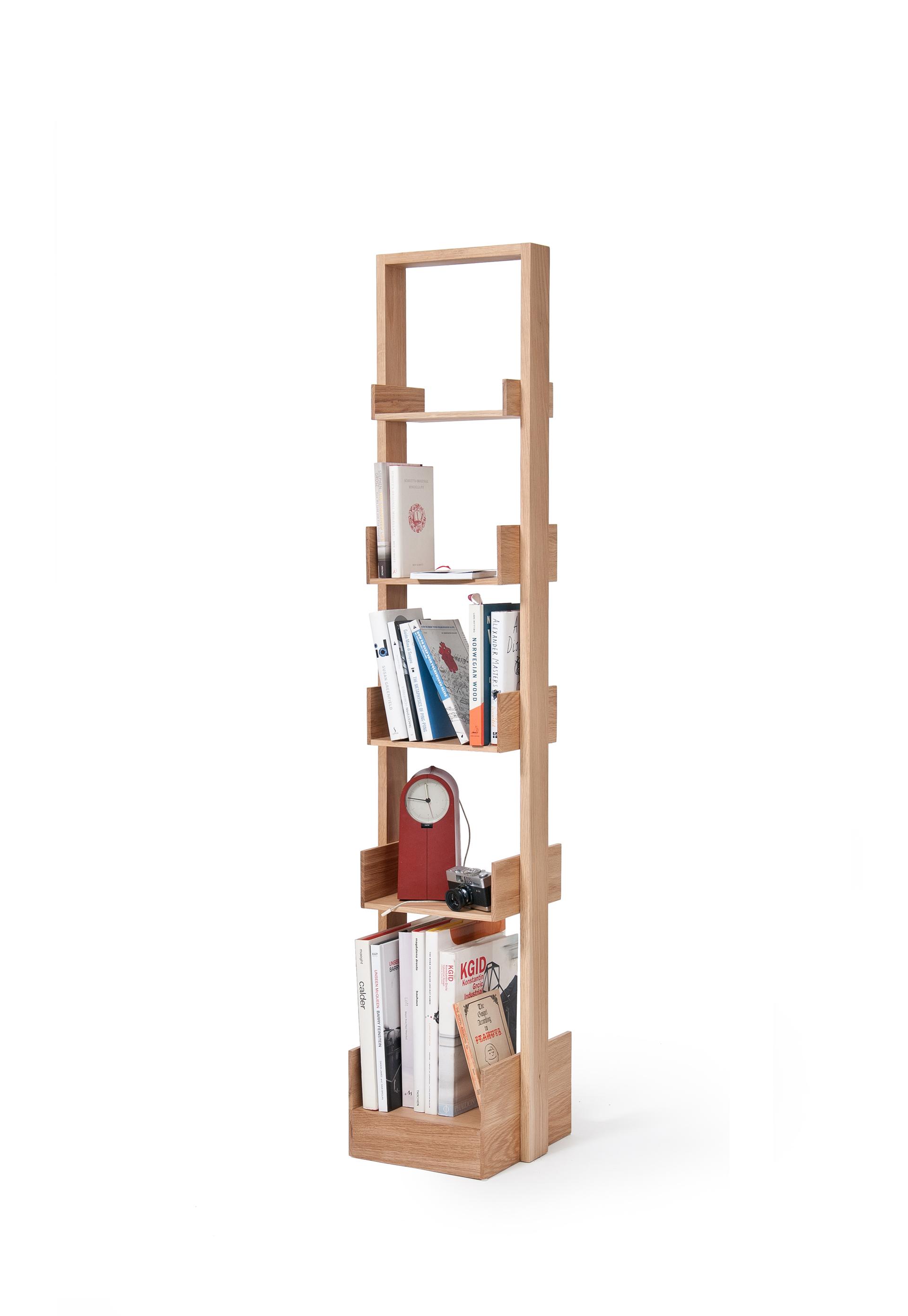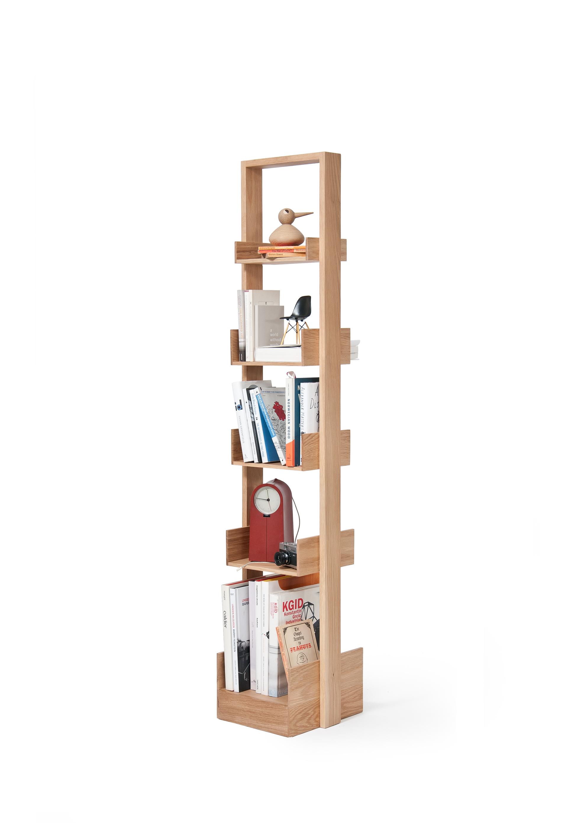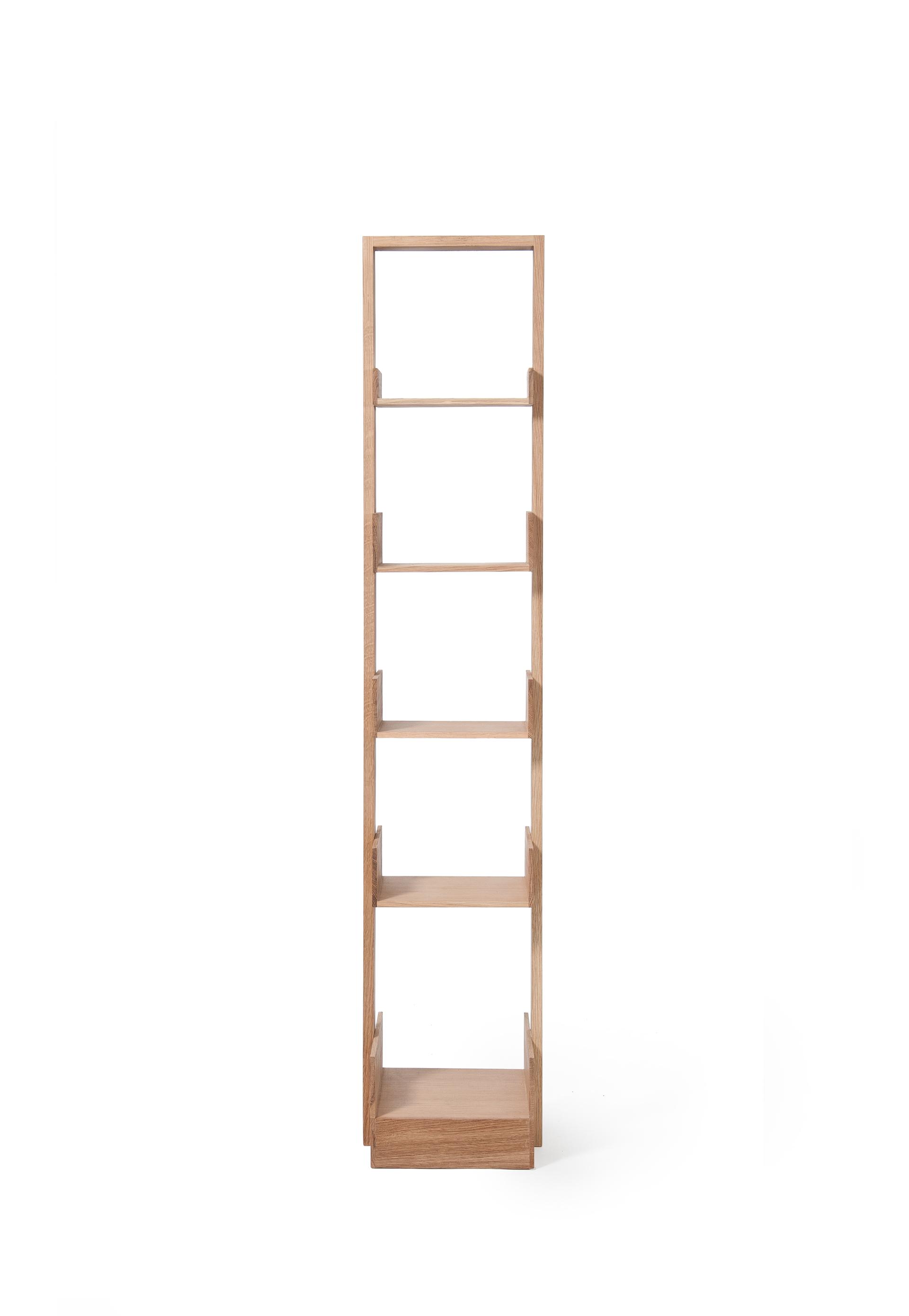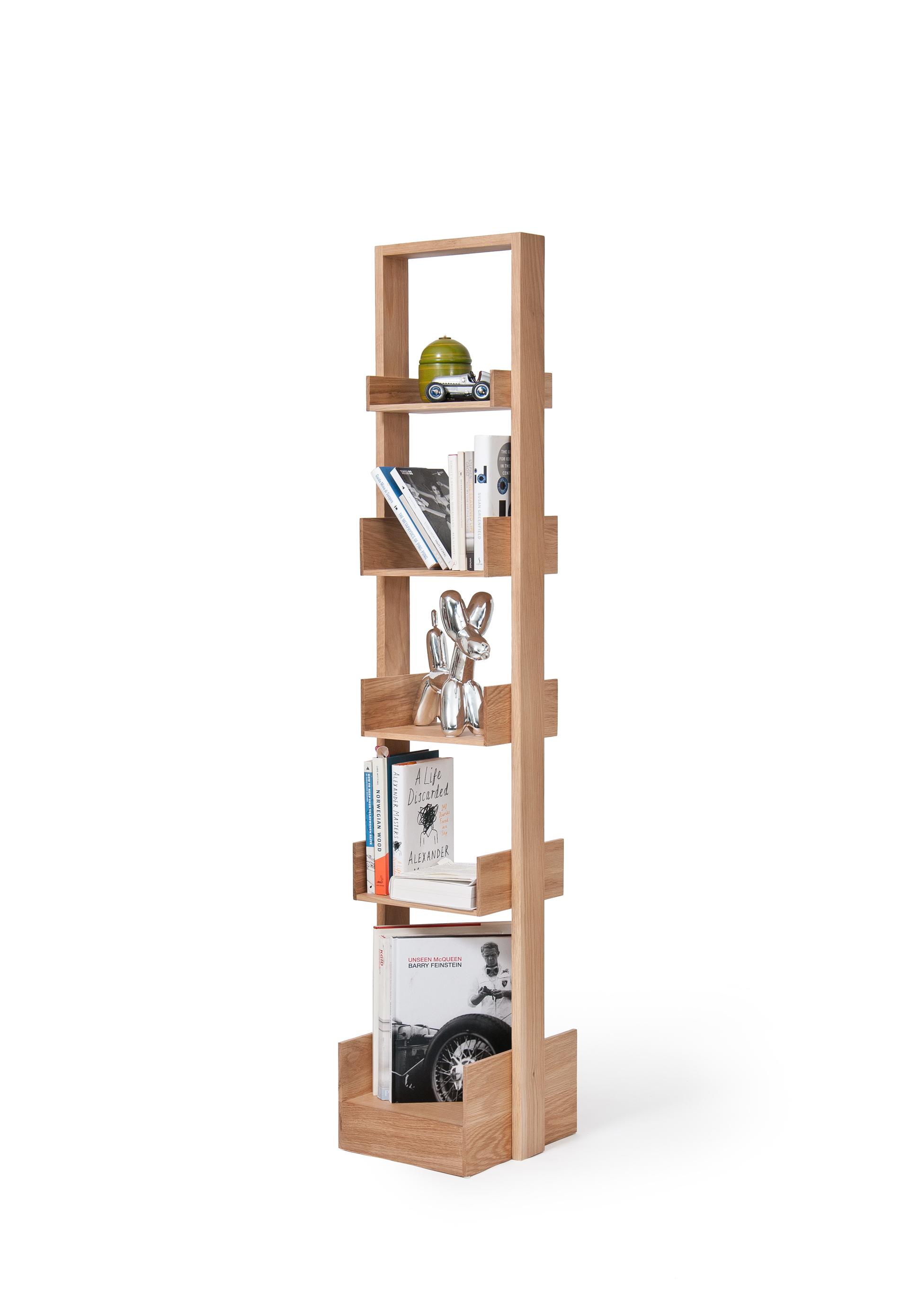 Bookie five shelf book storage and object display unit is a freestanding design. It doesn't need to be against a wall. There's no front or back and works equally well in an open plan space, an alcove or against a wall. Use as a single piece or in multiples.