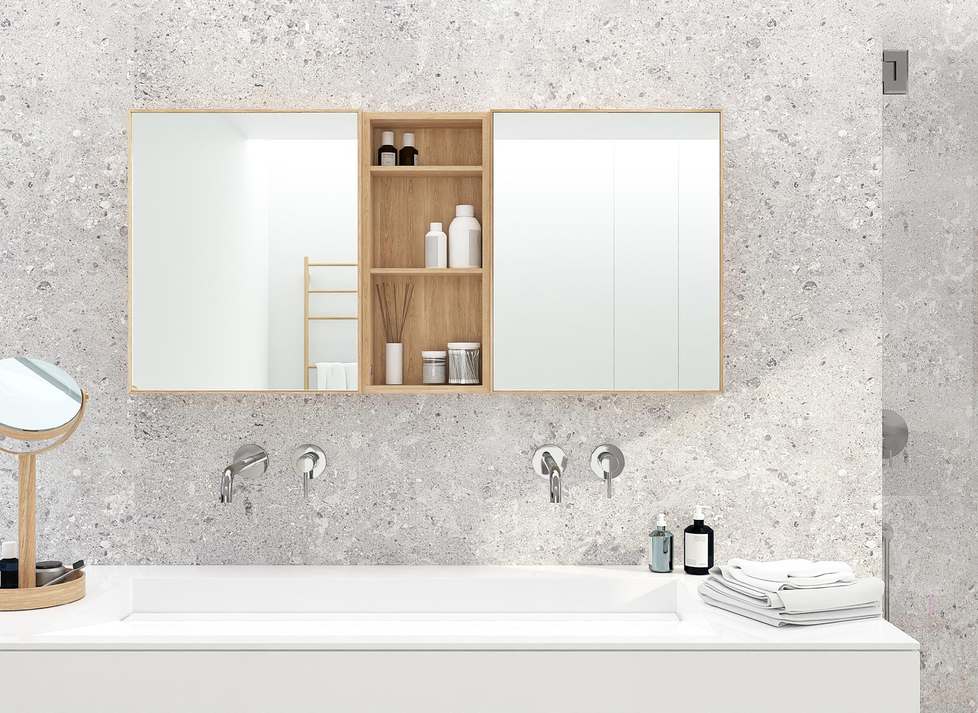 Slimline box shelf is designed to be fixed either next to our best-selling Slimline 550 bathroom cabinet, or in-between two Slimline 550 bathroom cabinets. The box shelf extends your storage opportunities offering flexibility. For wider wall spaces this is an elegant way to create a suite of matched designs.