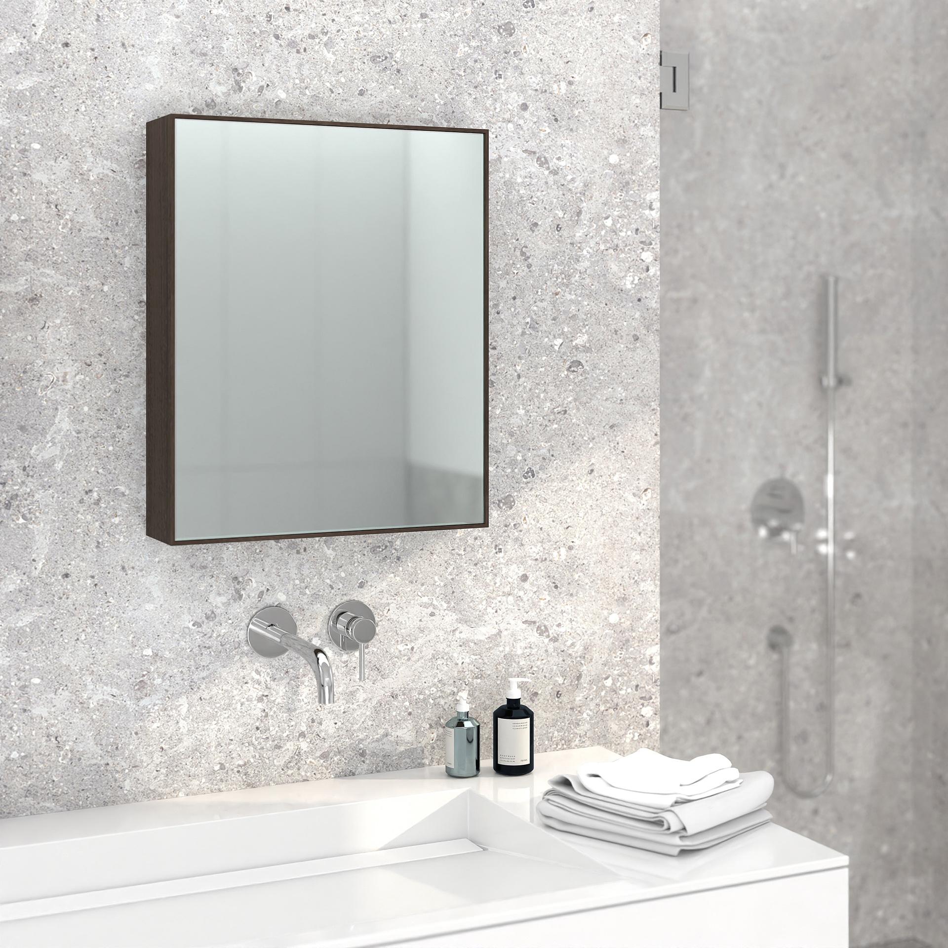 Bathroom mirror cabinet 'Slimline 550' is a minimalist, streamlined, design that fits into the tightest spots. The single mirror door gives a full face view and is framed with a solid oak beading edge. Inside it's fitted with 'soft-close' hinges for a luxury feel and there are two adjustable emerald edged glass shelves providing plenty of storage for bottles and lotions.
