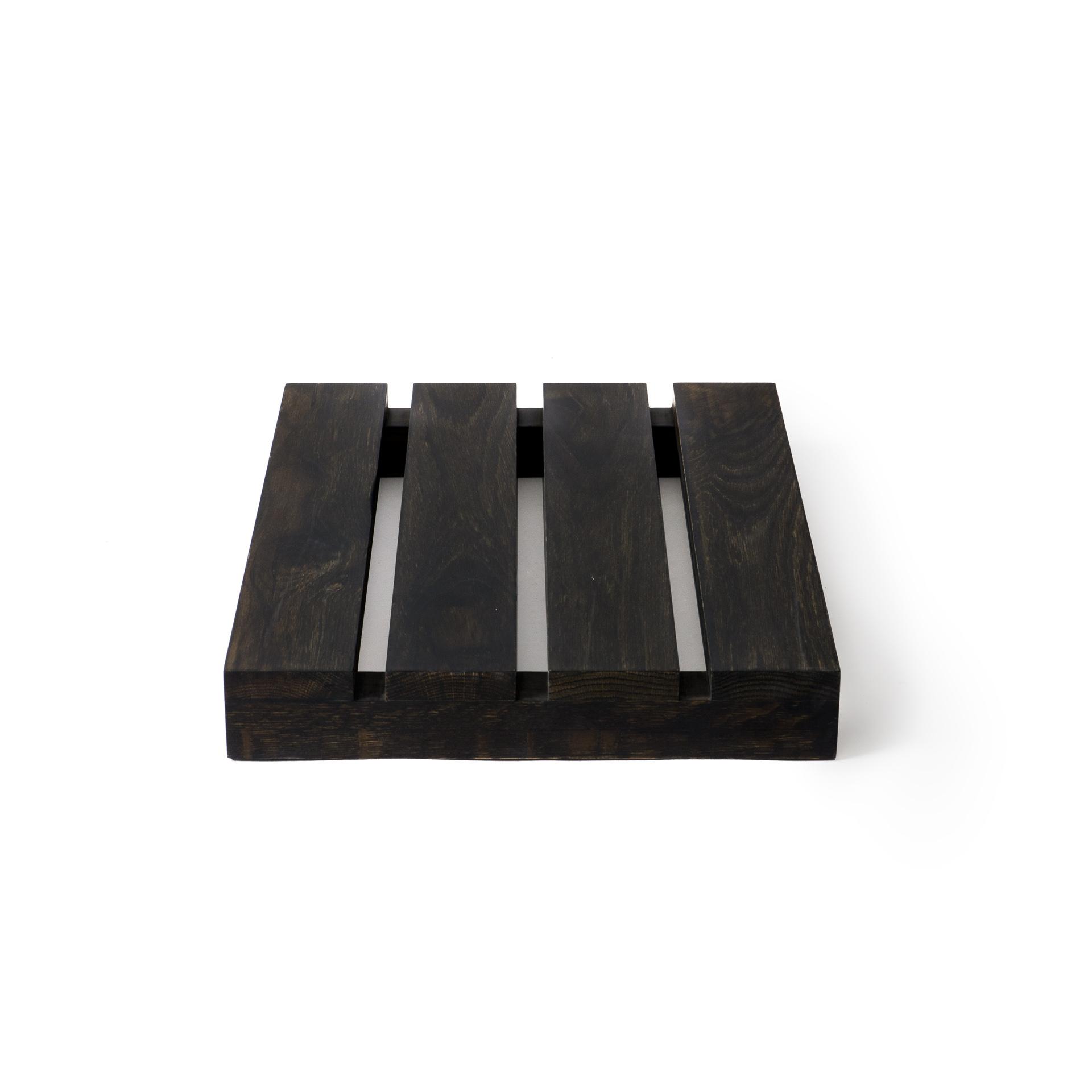 Made from sustainably harvested dark stained American white oak, selected for its depth of colour, beautiful grain pattern and traditional hardwood durability. All edges look crisp but are carefully hand sanded to make them soft to the touch. Finished with a matt, water resistant lacquer. Silicone feet stop it slipping. Design by Lincoln Rivers.