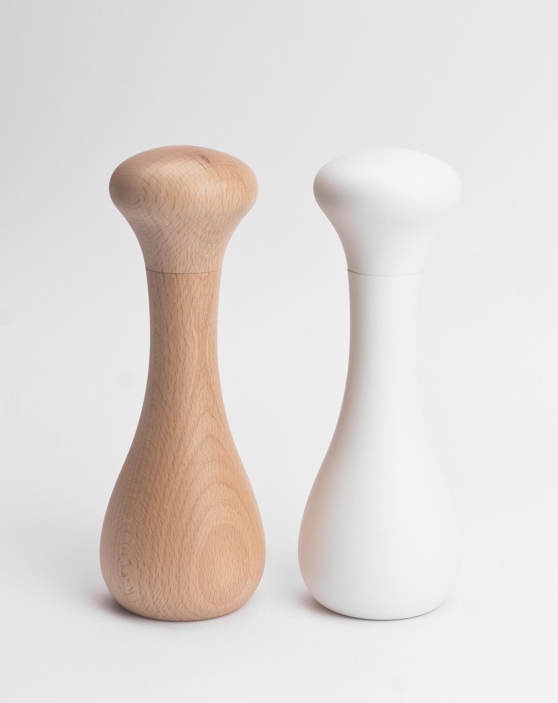The absence of an unsightly fixing knob and the slender elegance of this design makes Flo the perfect fit for your hand. This winning combination of form and function houses the proven Danish 'Crush Grind', adjustable, ceramic grinding mechanism. Using a single block of un-laminated, matt, epoxy painted beech, we keep the integrity of the grain and improve the grinders appearance.