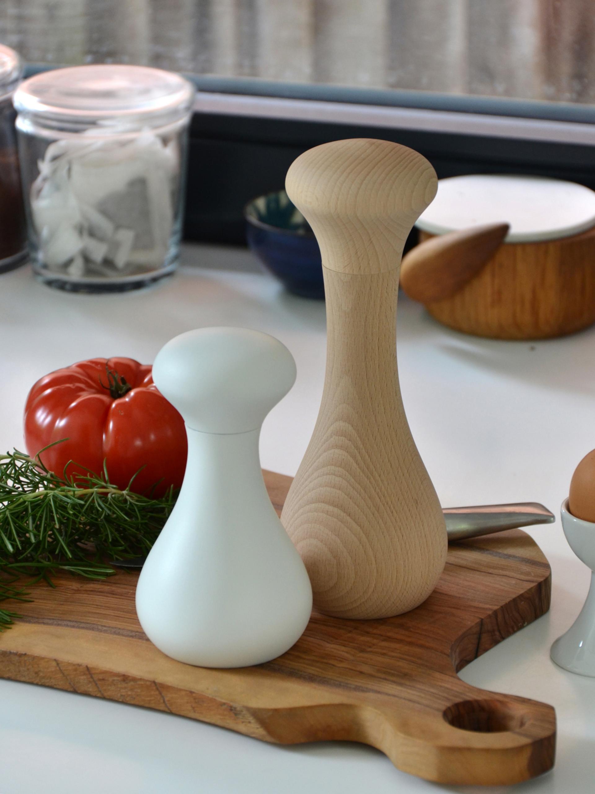 The absence of an unsightly fixing knob and the slender elegance of this design makes Flo the perfect fit for your hand. This winning combination of form and function houses the proven Danish 'Crush Grind', adjustable, ceramic grinding mechanism. Using a single block of un-laminated, matt, epoxy painted beech, we keep the integrity of the grain and improve the grinders appearance.