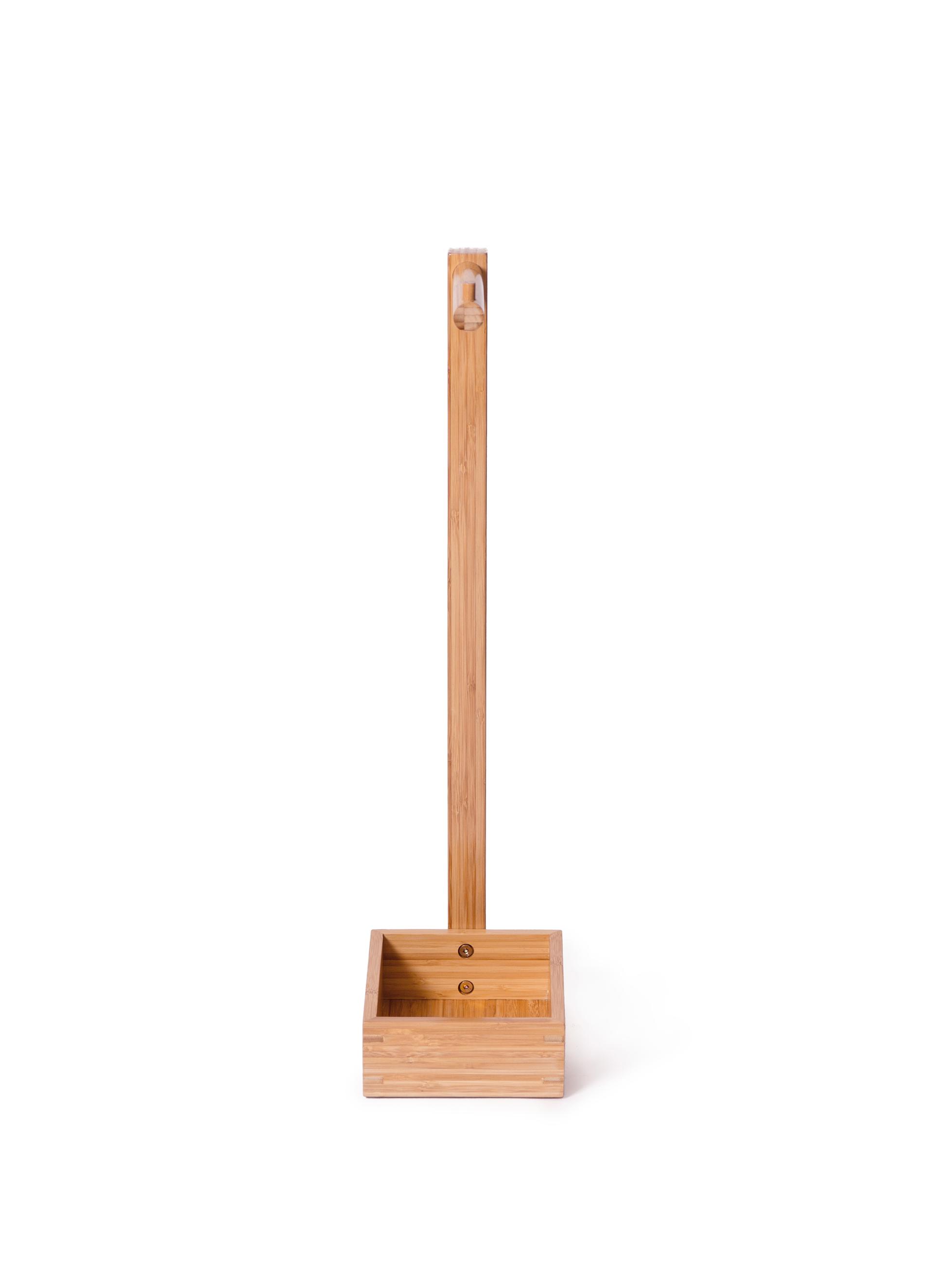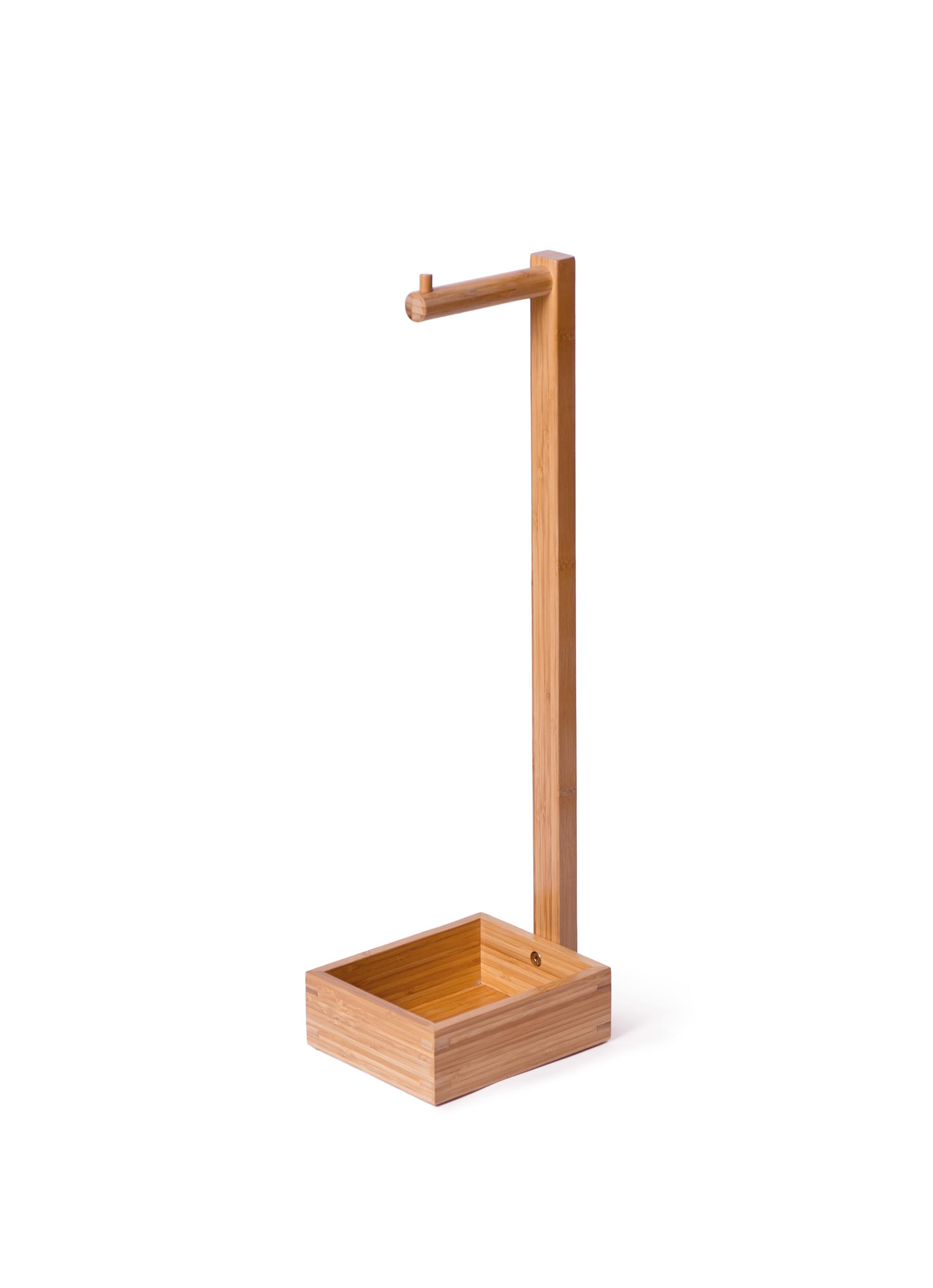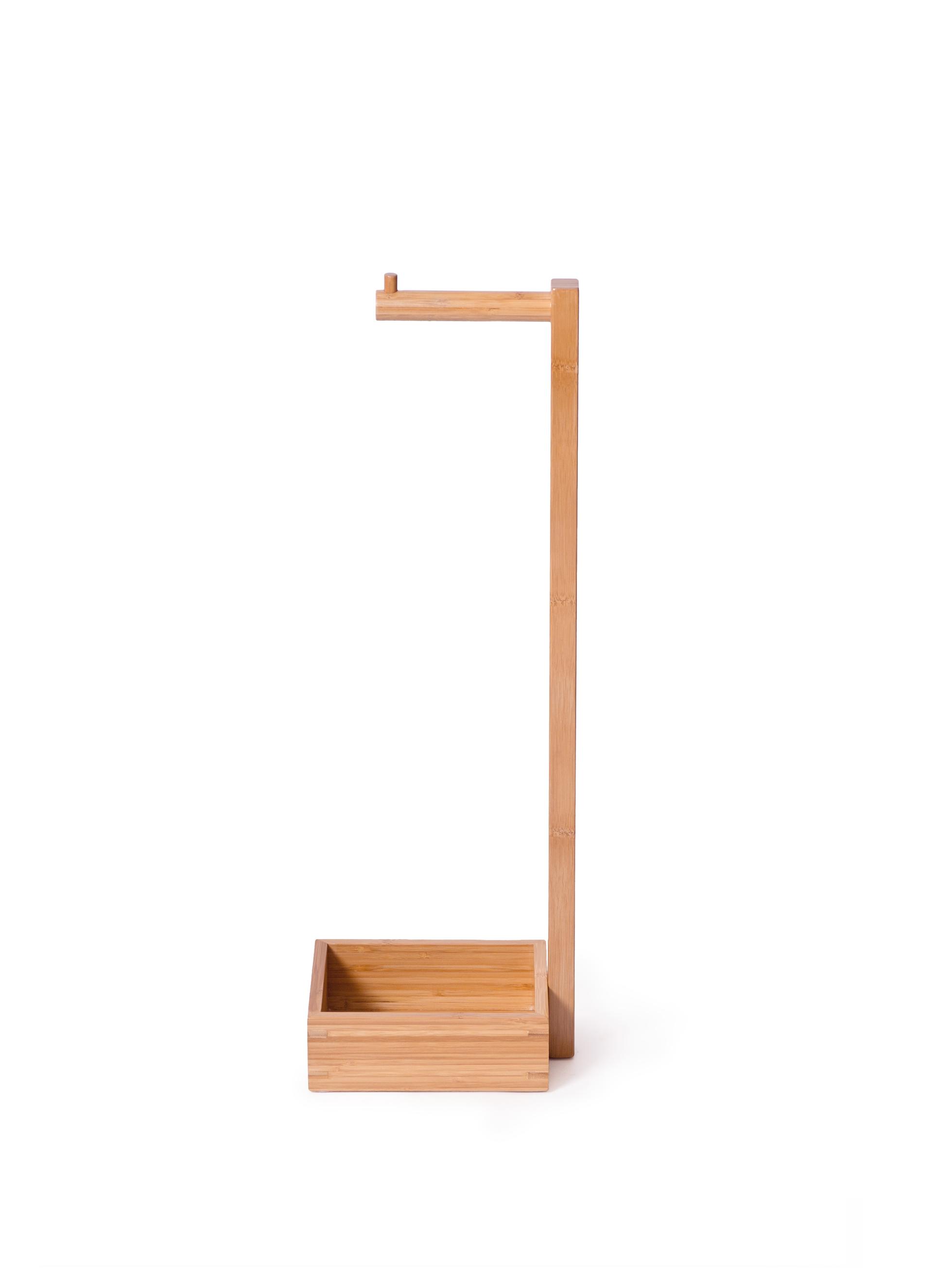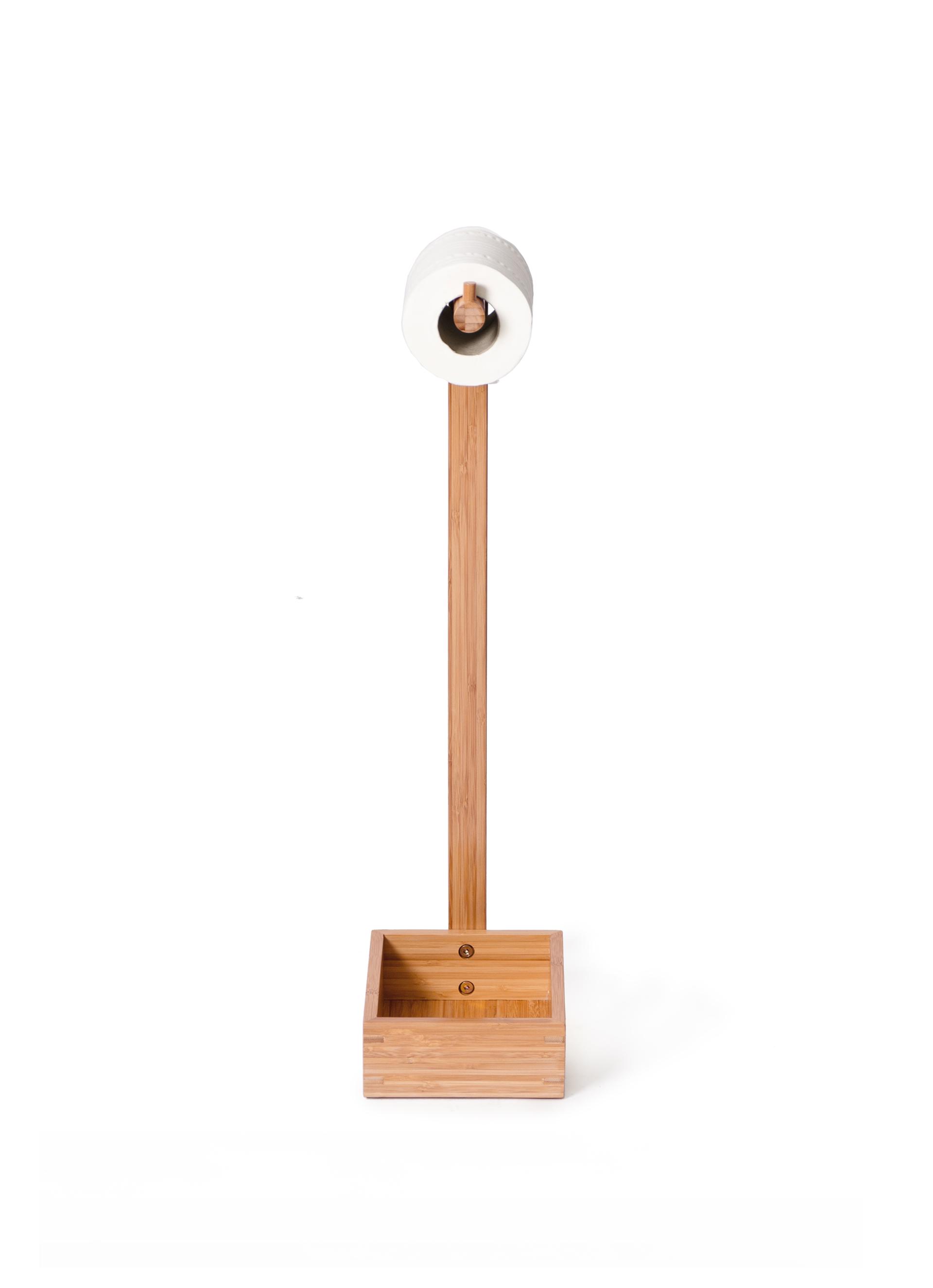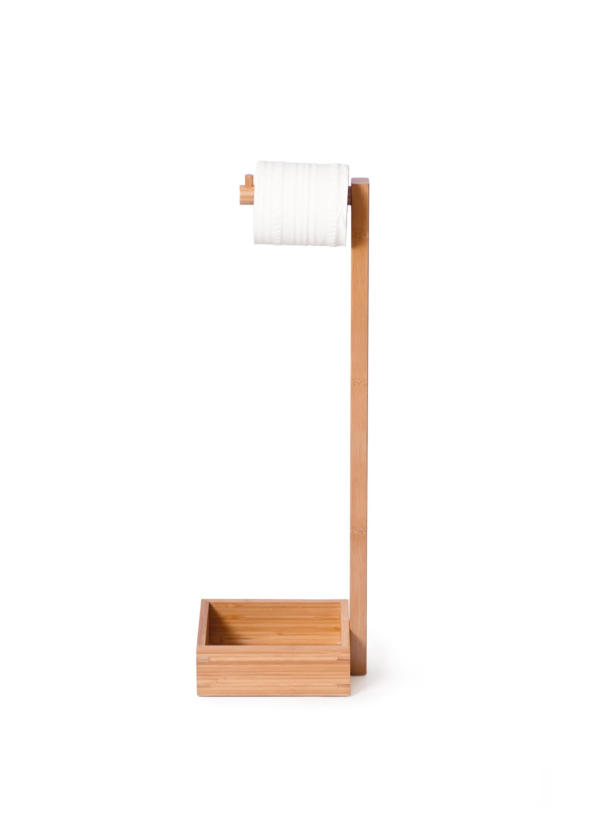 Arena freestanding roll holder can be moved to the right position. No need to fix to a wall, it's self contained and portable. Holding the toilet roll at an ergonomic height it can also store up to three spare rolls in the base, hygienically off the floor.