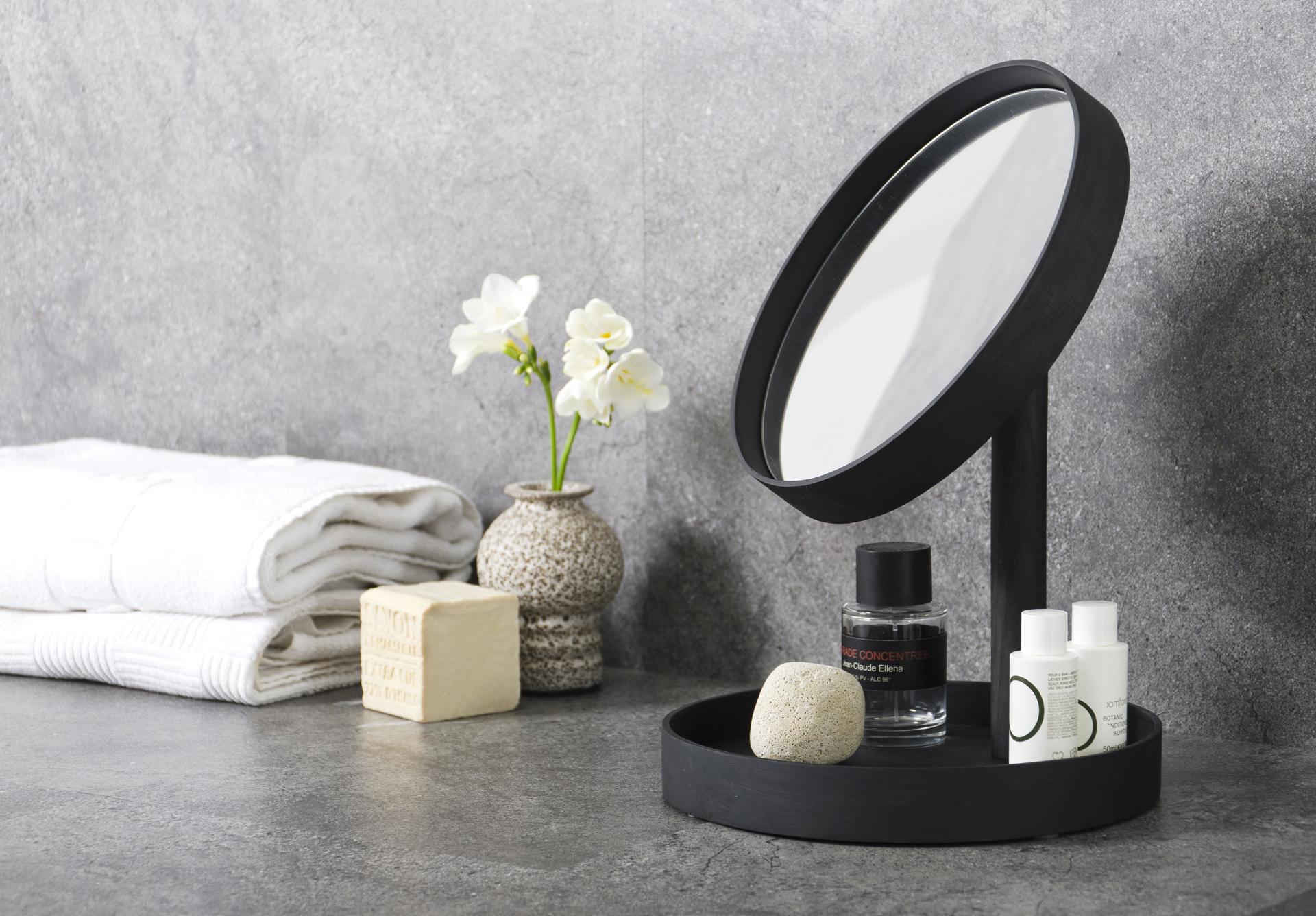 ‘Look’ mirror’s round, slim, wood, lip edge mirror looks contemporary. The base balances the design and acts as a practical storage tray keeping all your personal items in one place, conveniently close to hand. It’s ideal for dressing tables and bathrooms or simply as a decorative object.