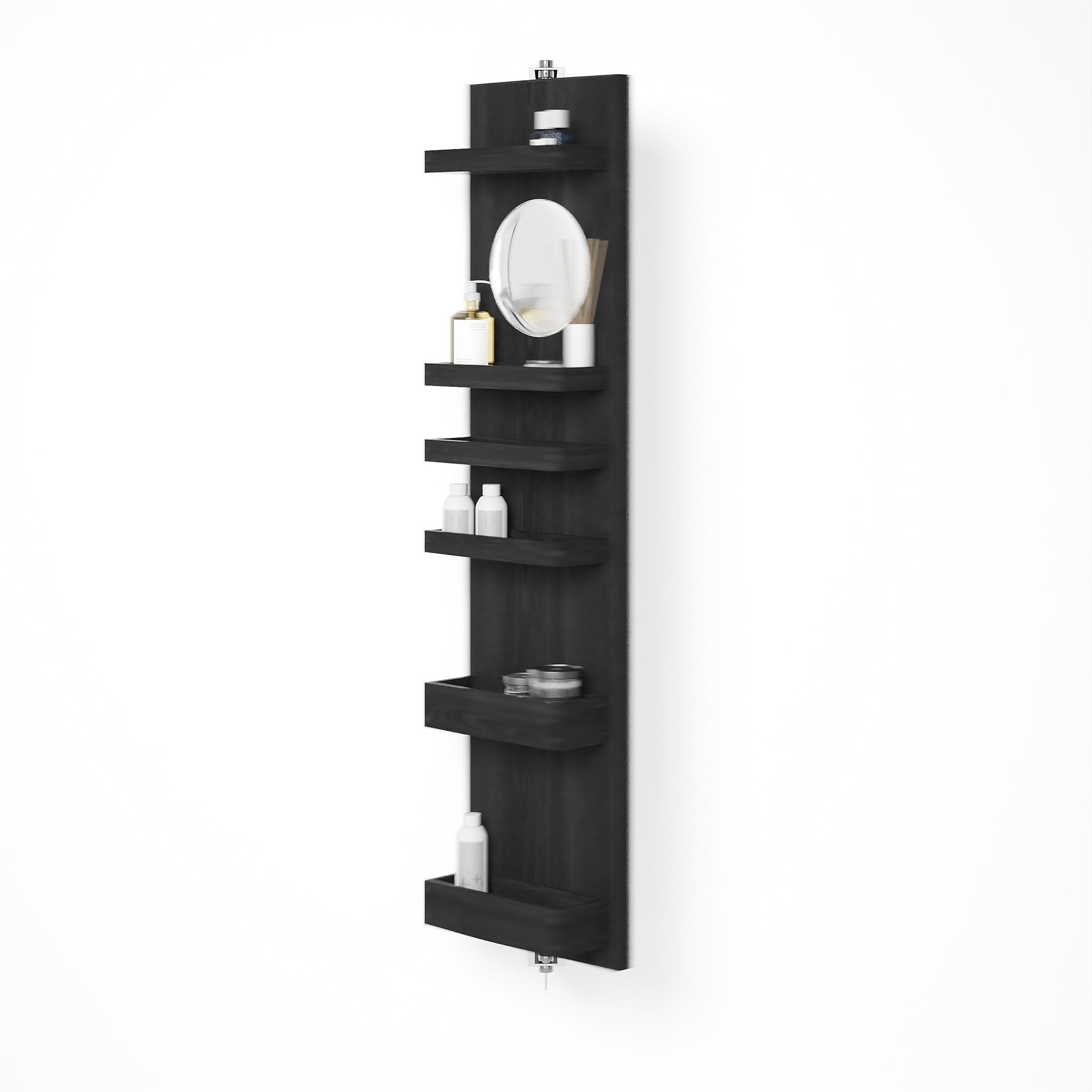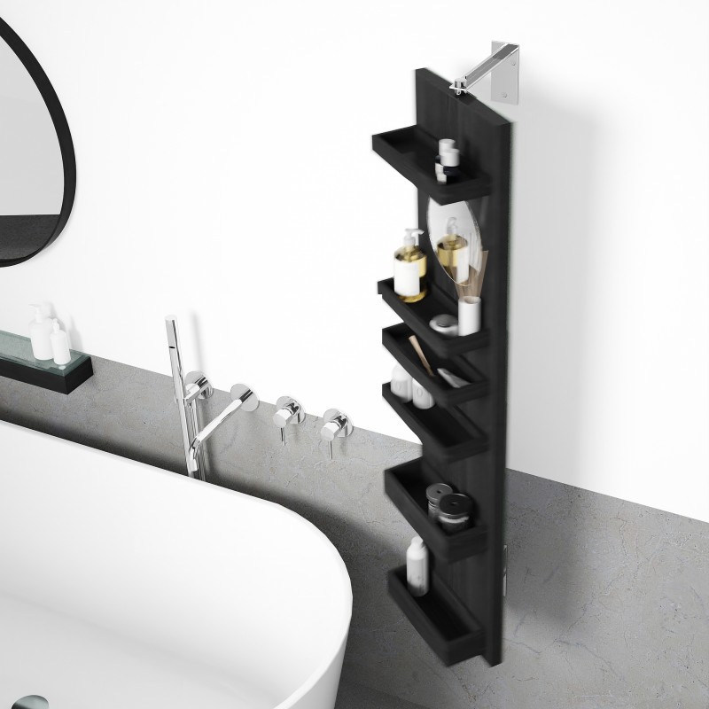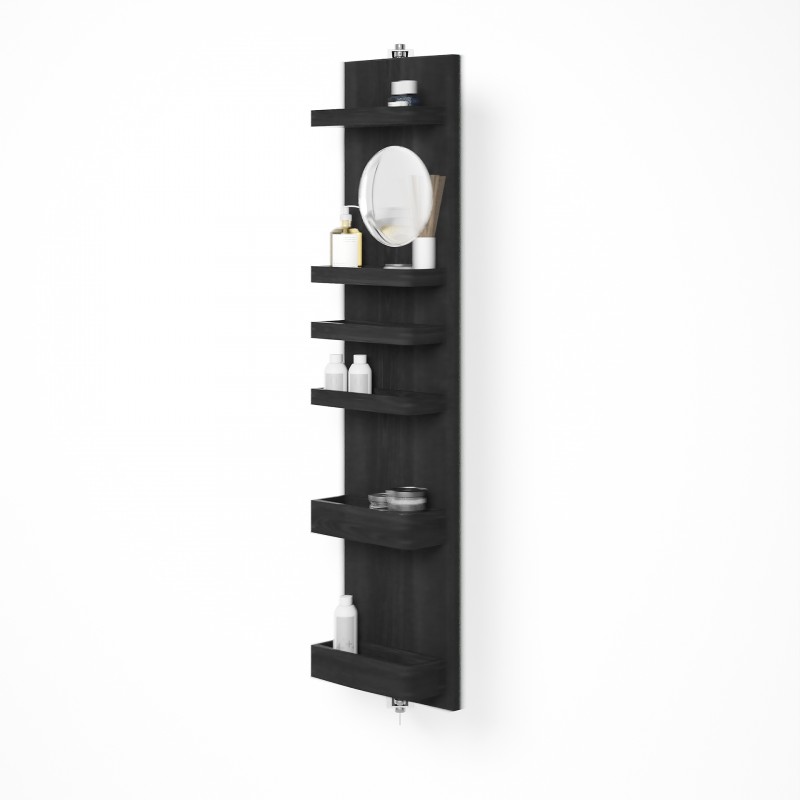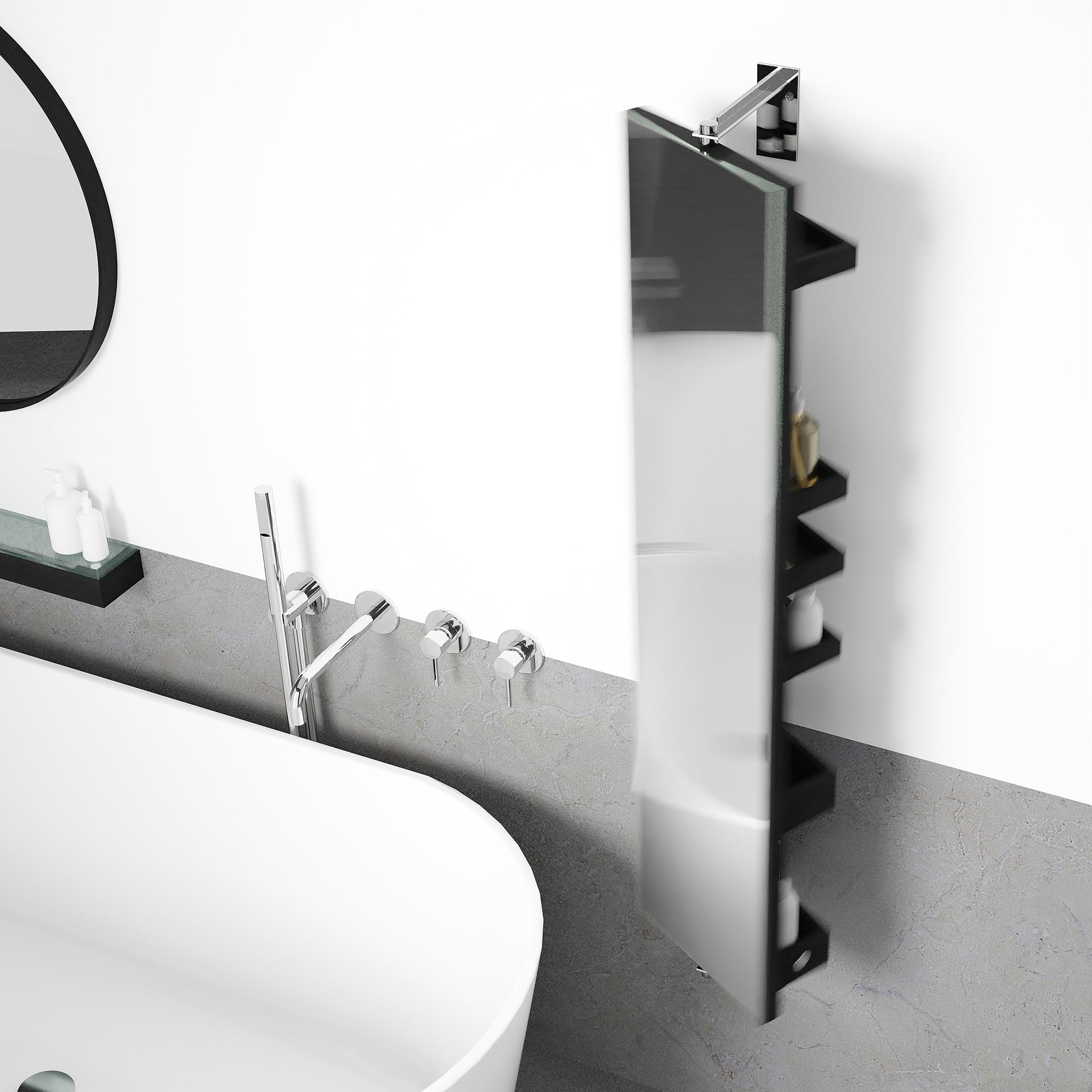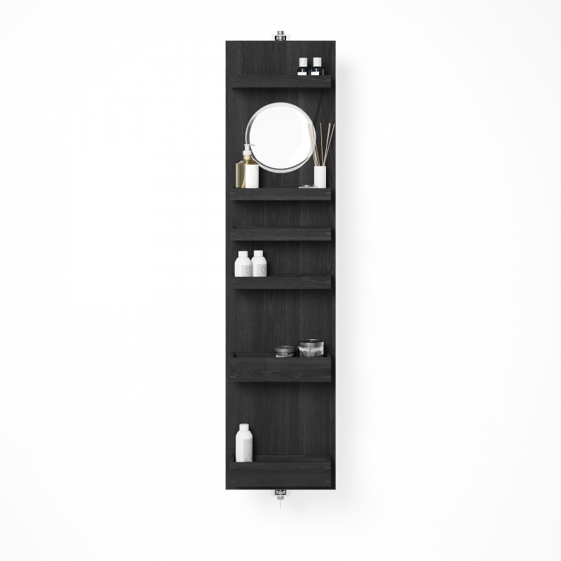 Cosmos revolve 1140 combines a number of desirable features in one highly evolved design. On one side is a full length dressing mirror (1140 x 280mm). On the other side, a round times five magnifying mirror (183mm diameter) gives a very close-up view. There are also six lipped edge storage trays for creams, bottles and lotions. The storage trays are staggered to provide efficient storage. Slim trays at the top are perfect for storing slim jars, lipsticks and pencils. Deep trays lower down are ideal for taller bottles and containers. Polished stainless steel wall brackets provide a secure fixing and the cabinet rotates smoothly making access effortless.