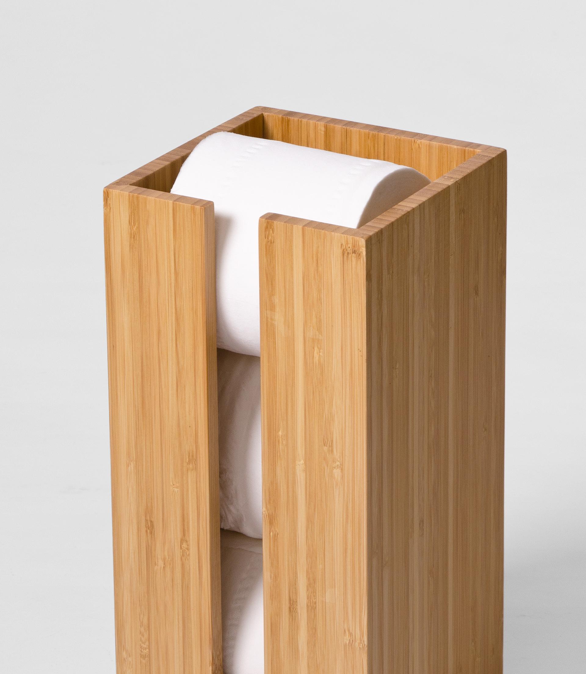 Roll Holder Box Arena is a compact design that holds up to three spare toilet rolls. The front panel slot makes it easy to use and displays spare rolls attractively. Keep spares close at hand for when you might need them.