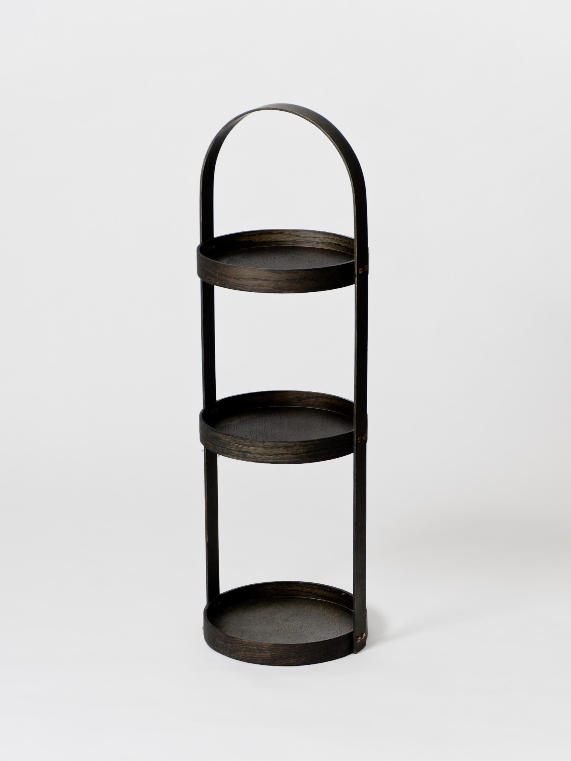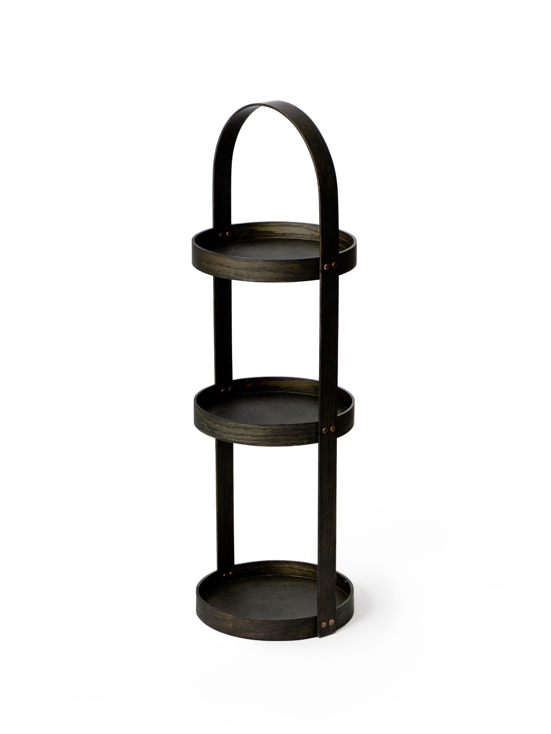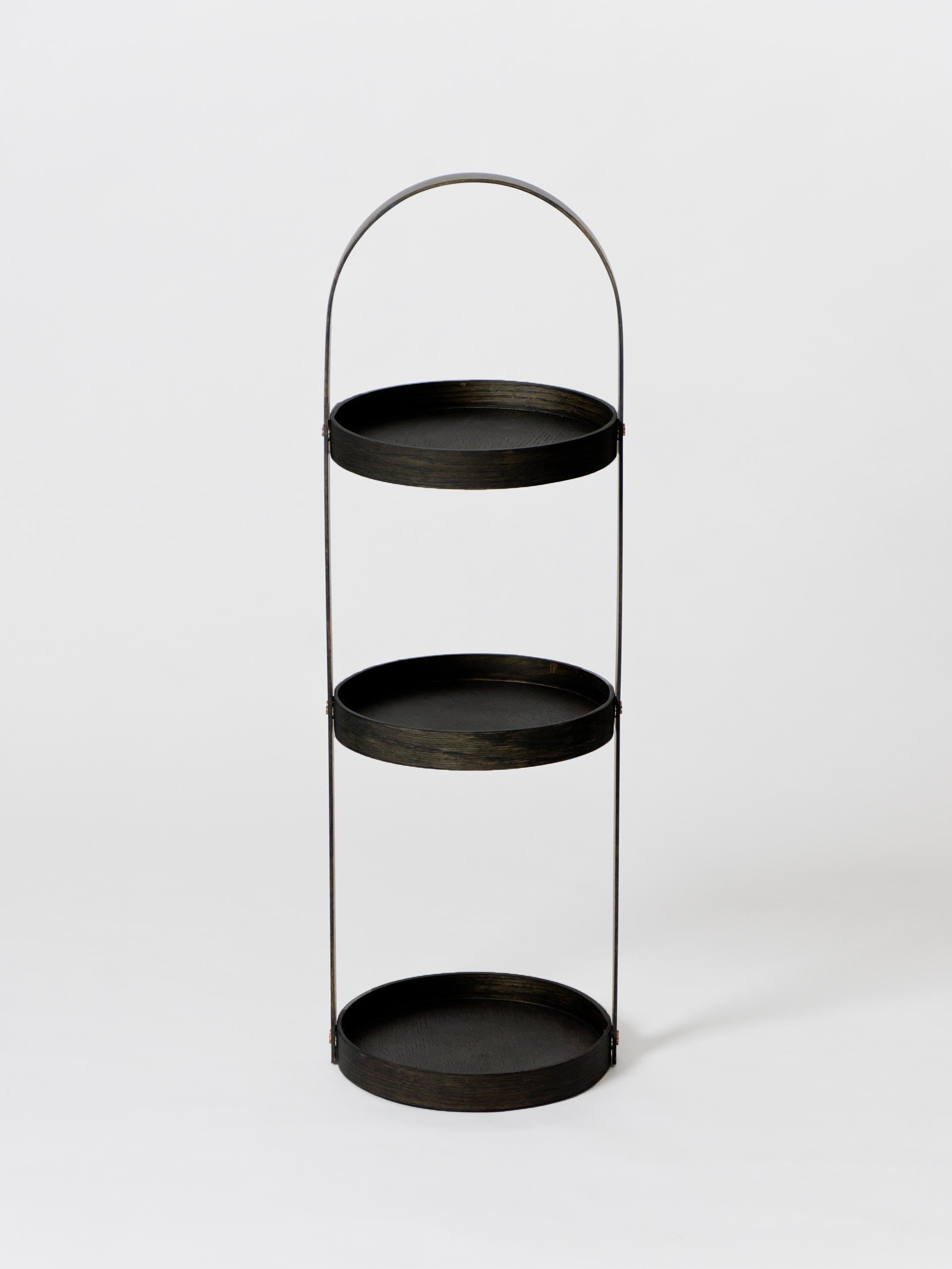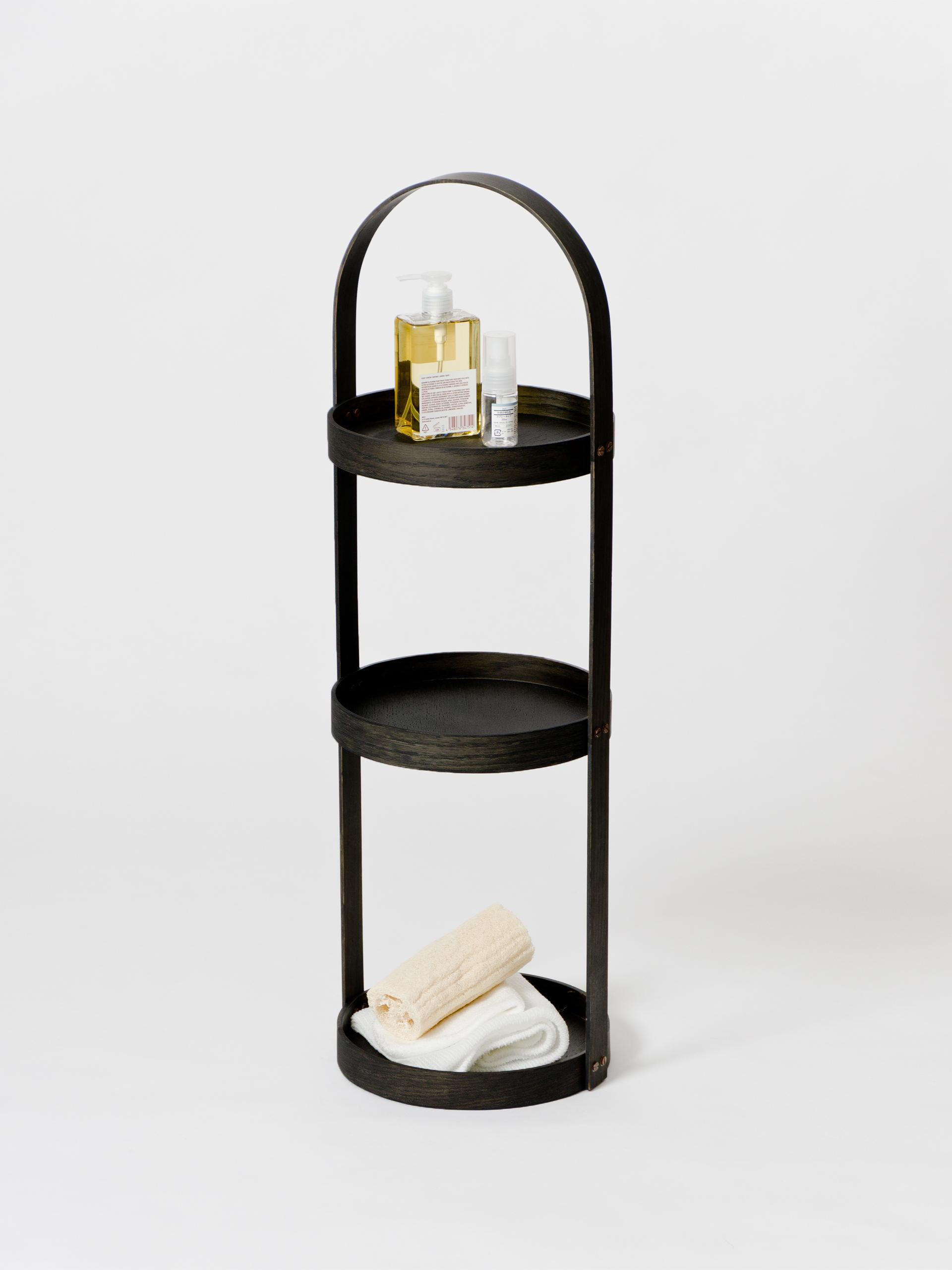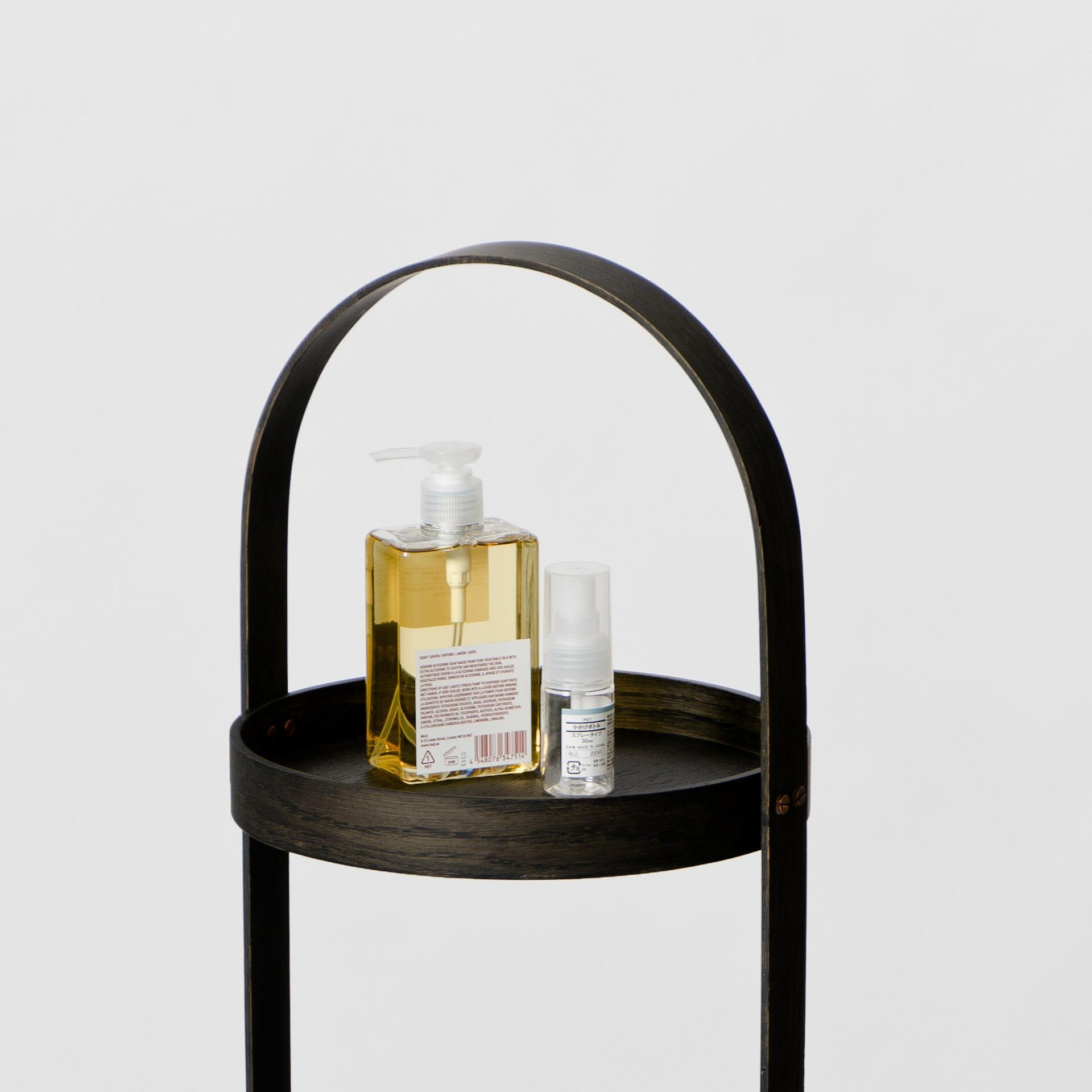 With it's slim profile and refined form, the mezza round caddy has a sensual appeal. Portable, well proportioned, and with staggered, shallow lipped trays, it provides accessible storage for any environment.