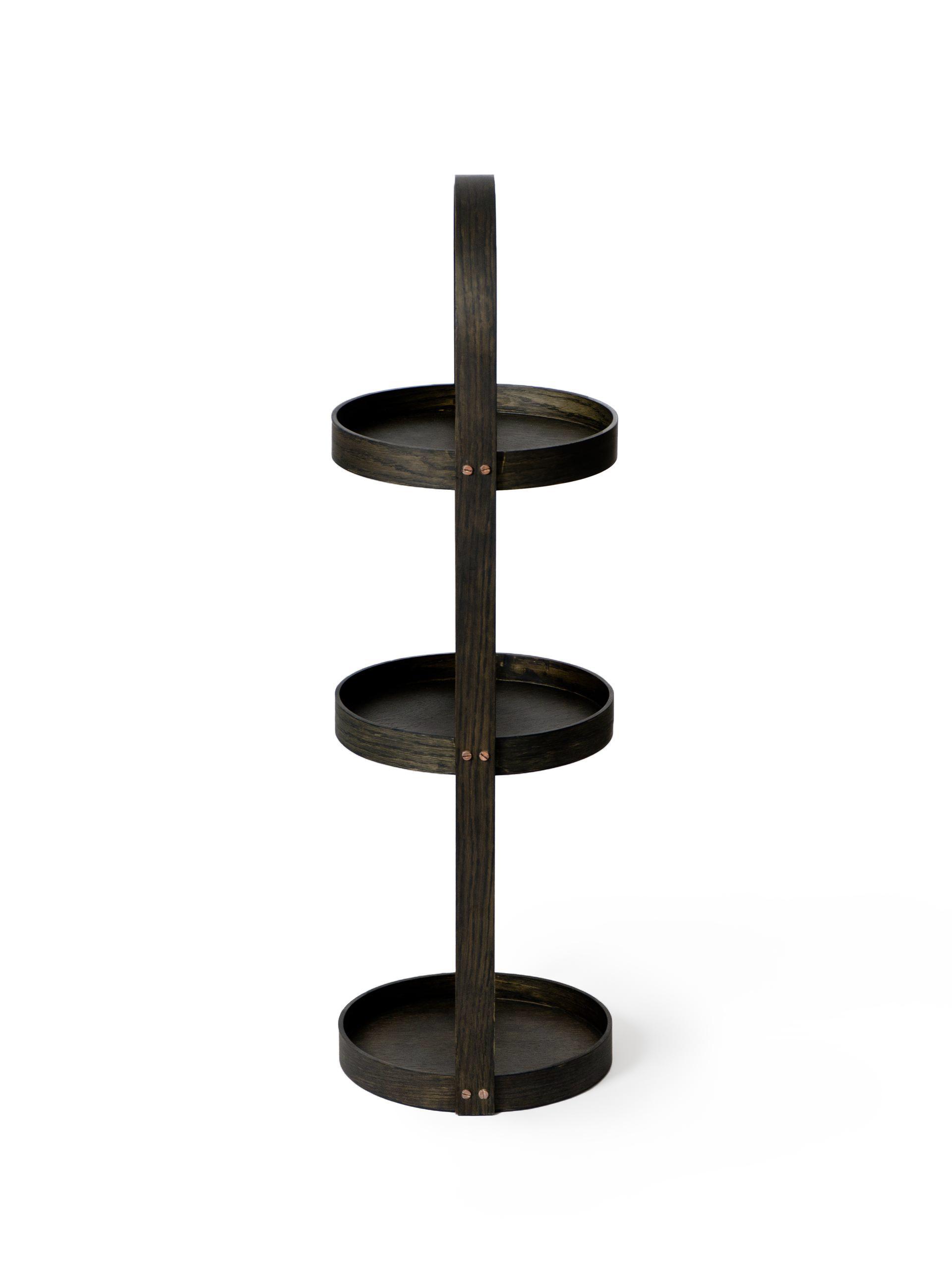 Made from sustainably harvested dark stained American white oak and oak veneers, selected for their depth of colour, beautiful grain pattern and traditional hardwood durability. All edges look crisp but are carefully hand sanded to make them soft to the touch. Finished with a matt, water resistant lacquer. Silicone rubber feet stop it slipping. Design by Lincoln Rivers.