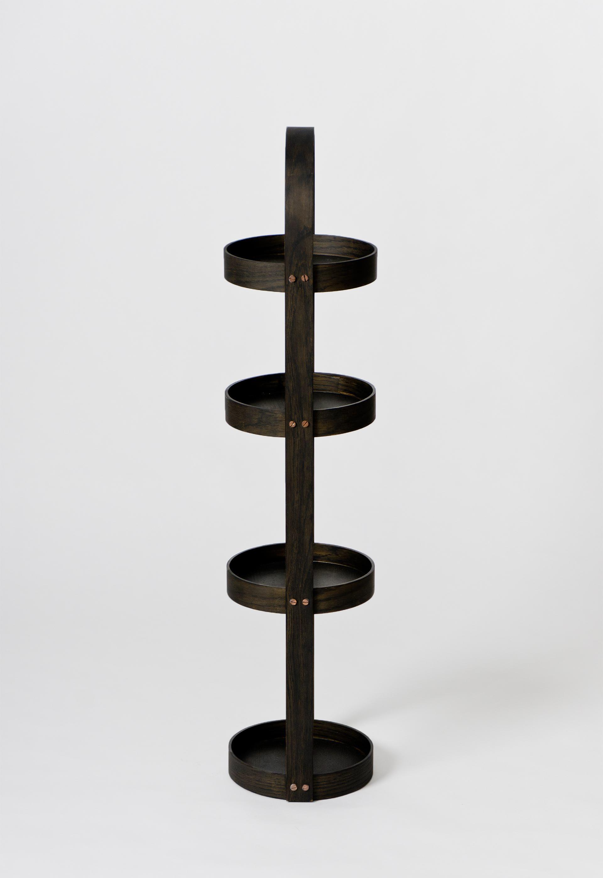 A harmony of curves, compact and efficient, 4 tray Mezza round caddy can fit in those smaller spaces. Portable, well proportioned, and with staggered, shallow lipped trays, it provides accessible, functional storage for any environment.