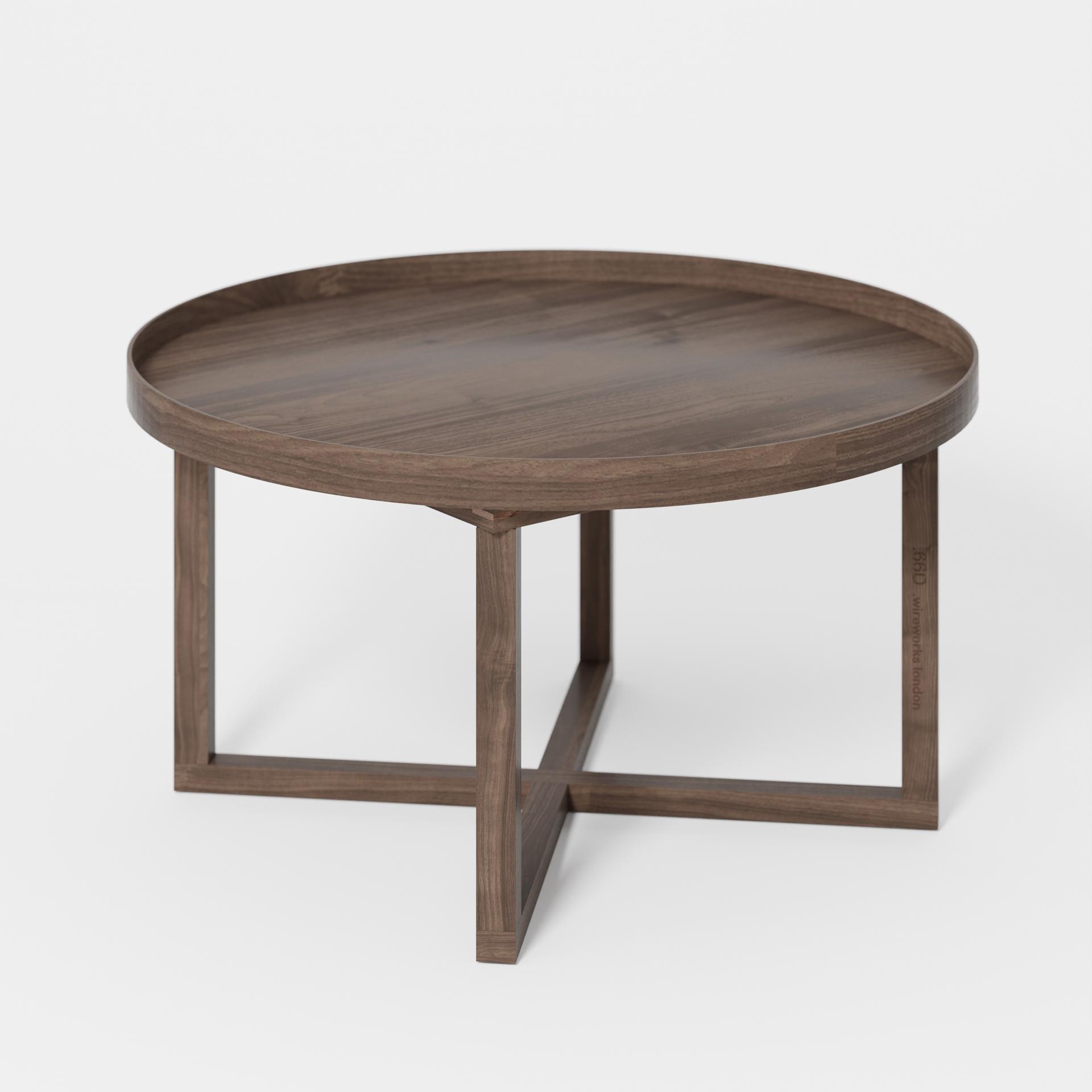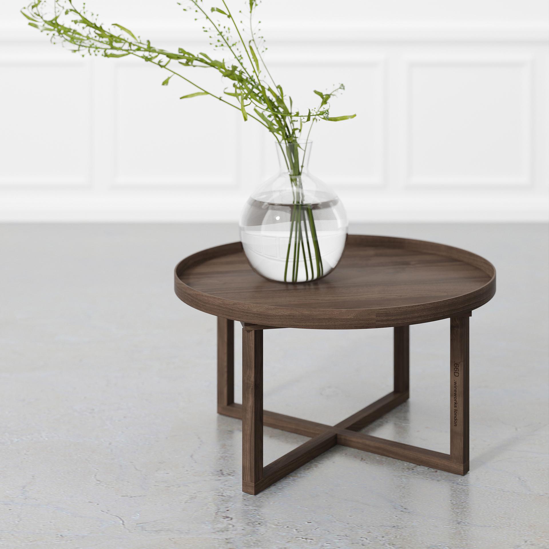 Side table and coffee table '66D' works equally well as the centre piece of a room or as a side table next to a sofa. Keep magazines, remote controls, coffee and teacups within reach. The full circle lipped edge prevents things falling off and liquids from pouring off. Underneath, the open frame legs give space for your knees and feet.