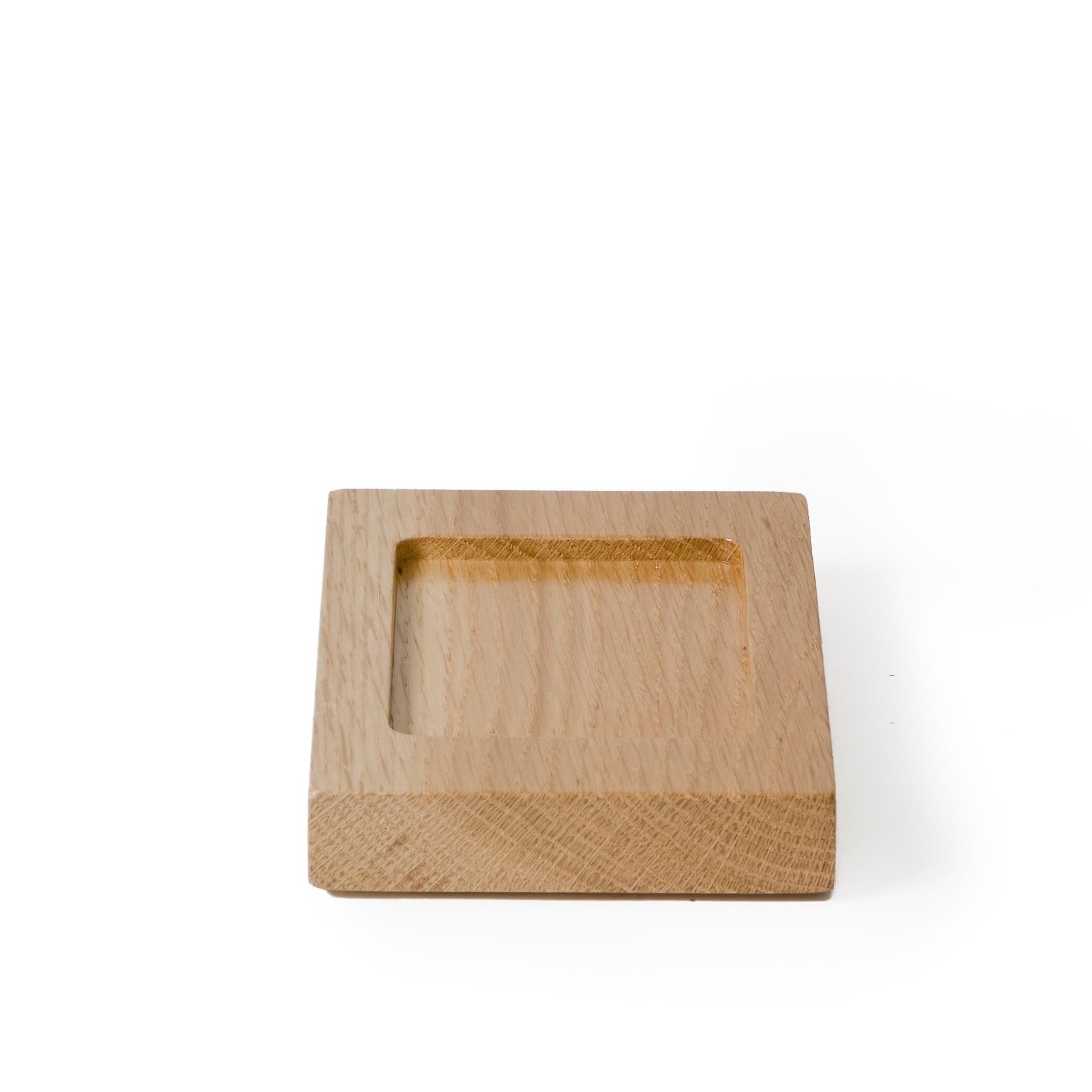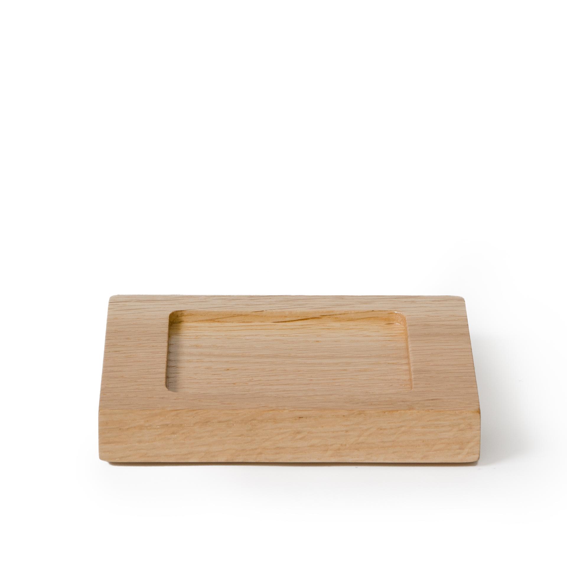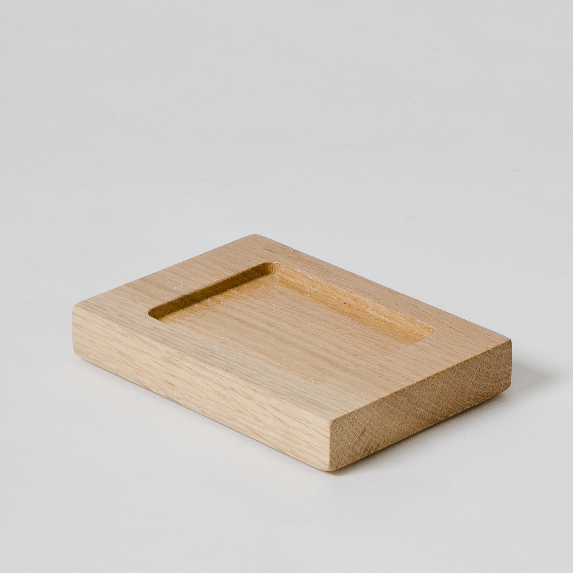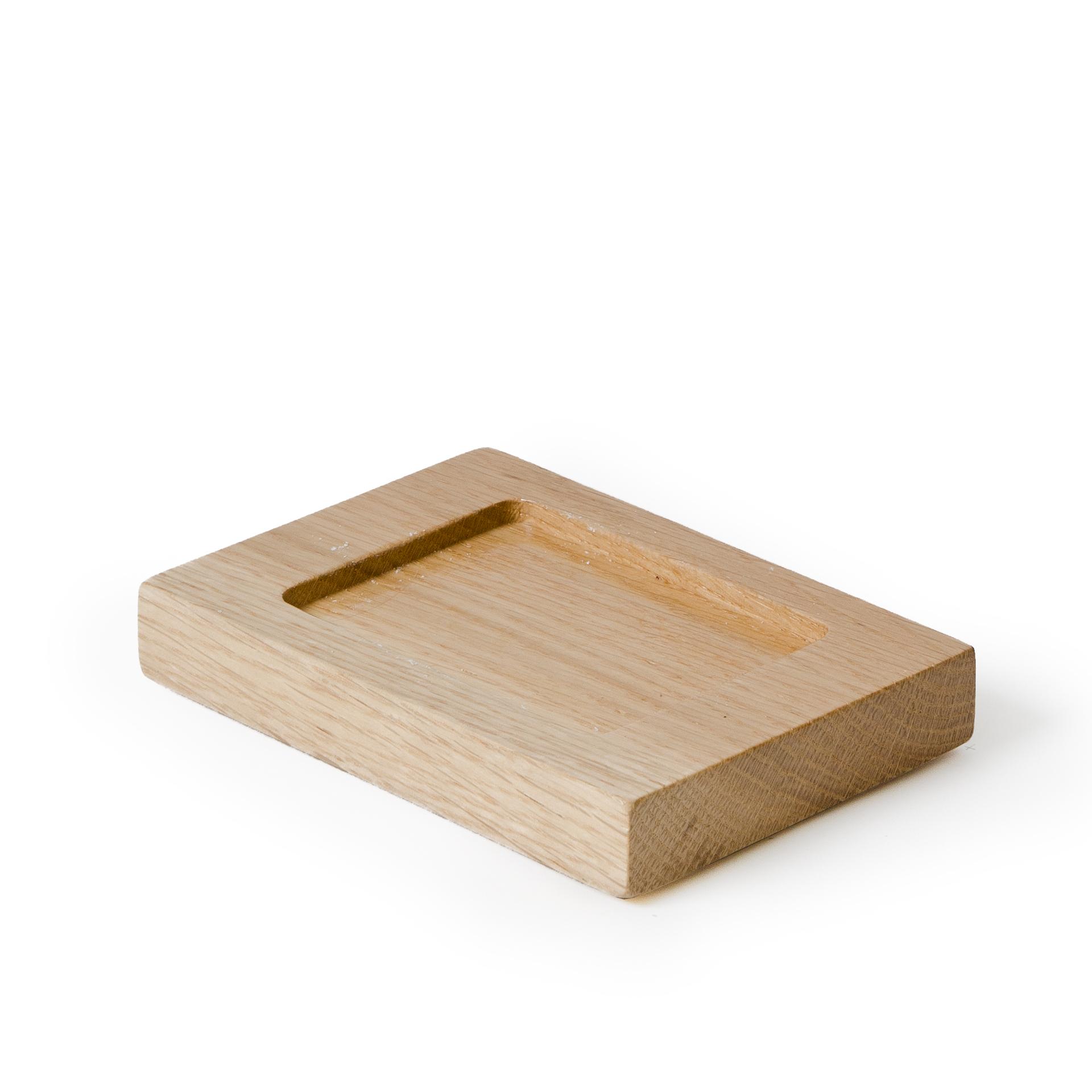 An accent design to keep next to a bath or basin, Mezza soap-dish is made from solid oak with a water repellent coating.