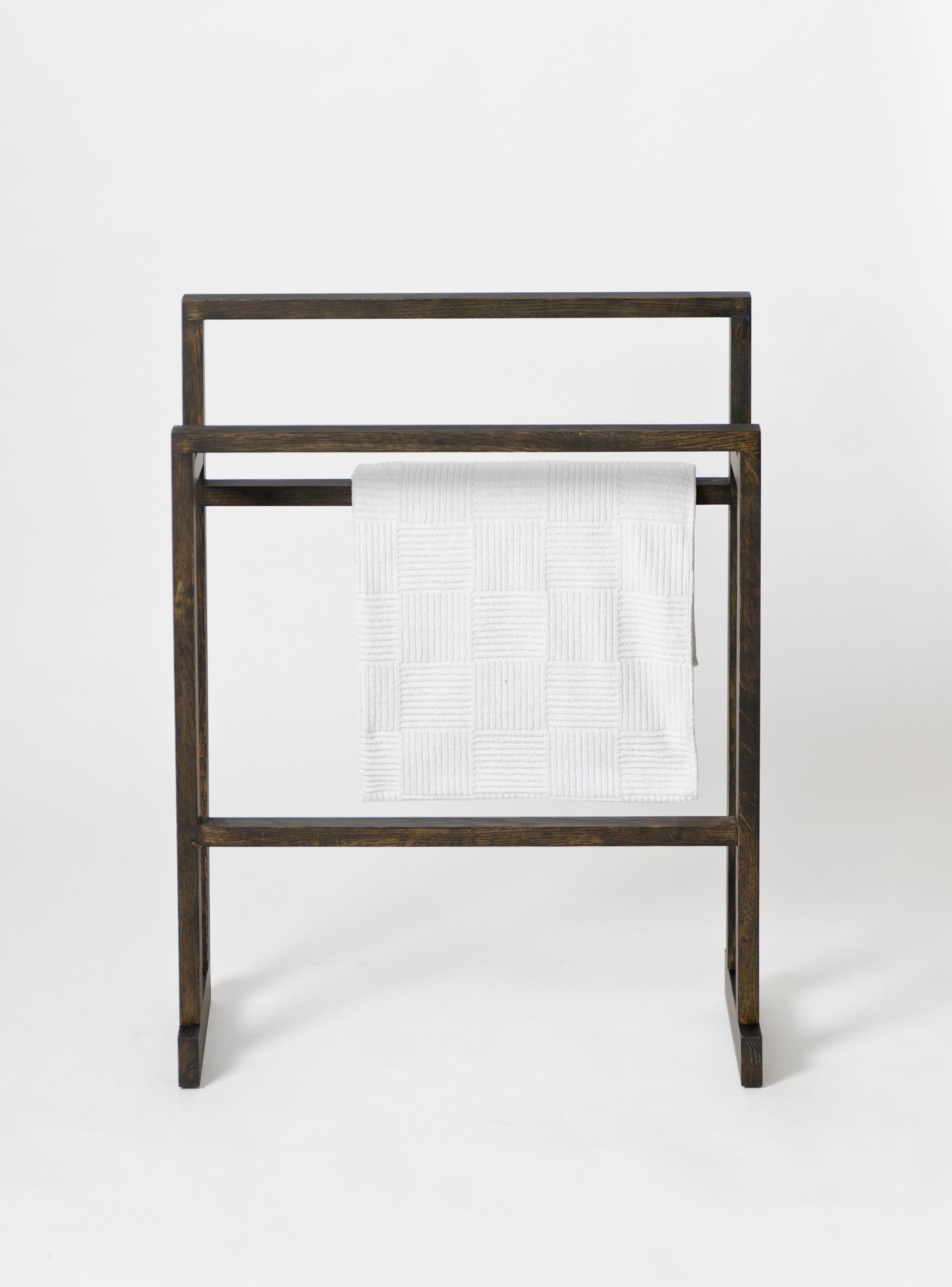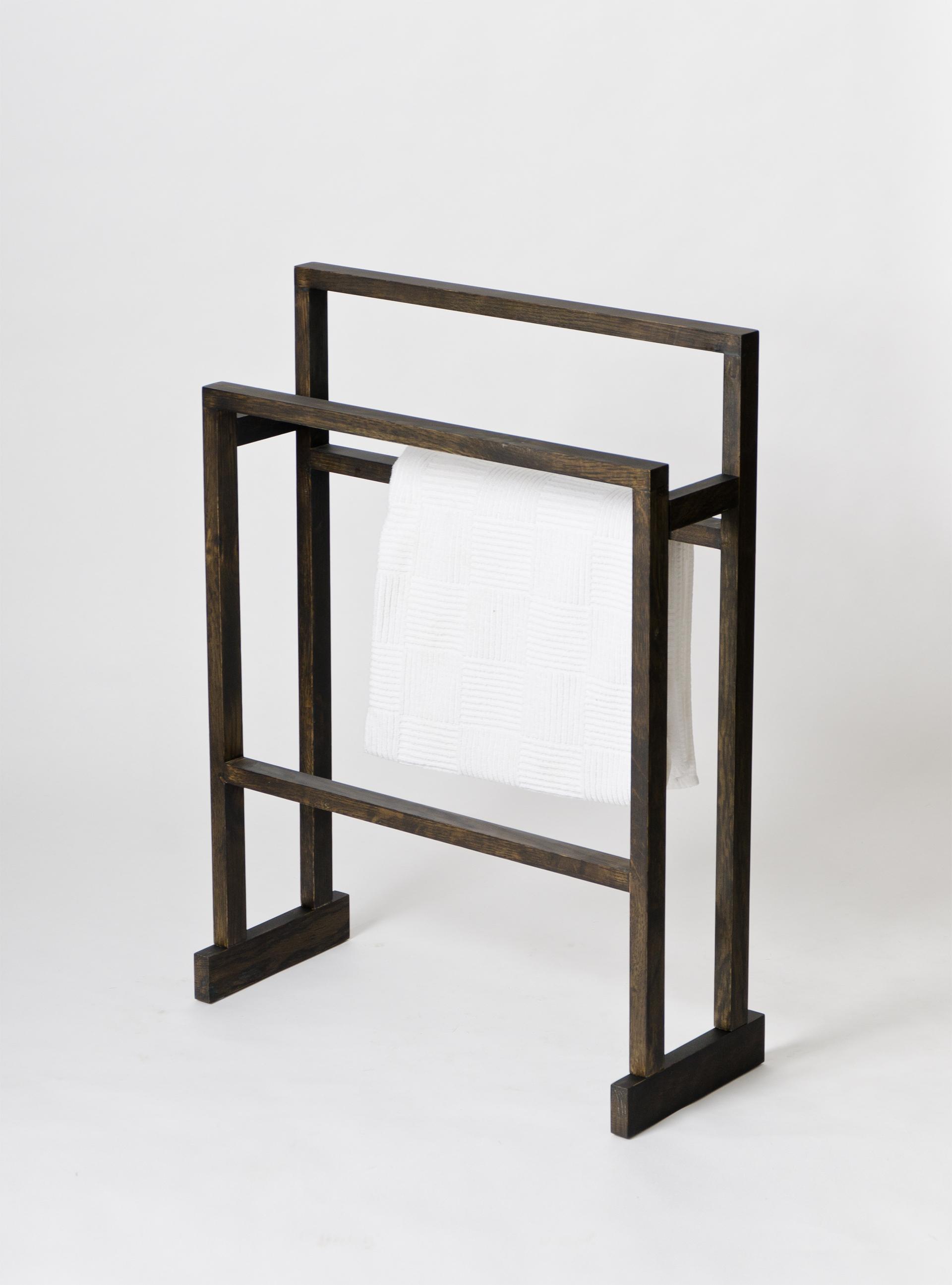 Mezza towel rail is a capable freestanding towel holder with a slim profile that makes it ideal for smaller spaces. Providing three stepped and well-spaced rails, towels of all sizes can be accommodated. Ideal for bathroom, sauna, pool or hot-tub use and sealed with a water-resistant lacquer.