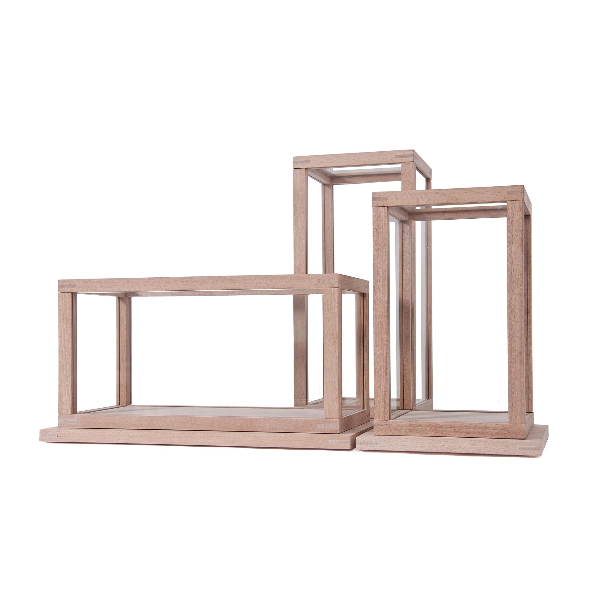 Showcase precious things with special meaning in a display case curated by you. Contents can easily be changed, the display cover simply lifts off. Showing multiple cases and combining different sizes in groups creates added impact.