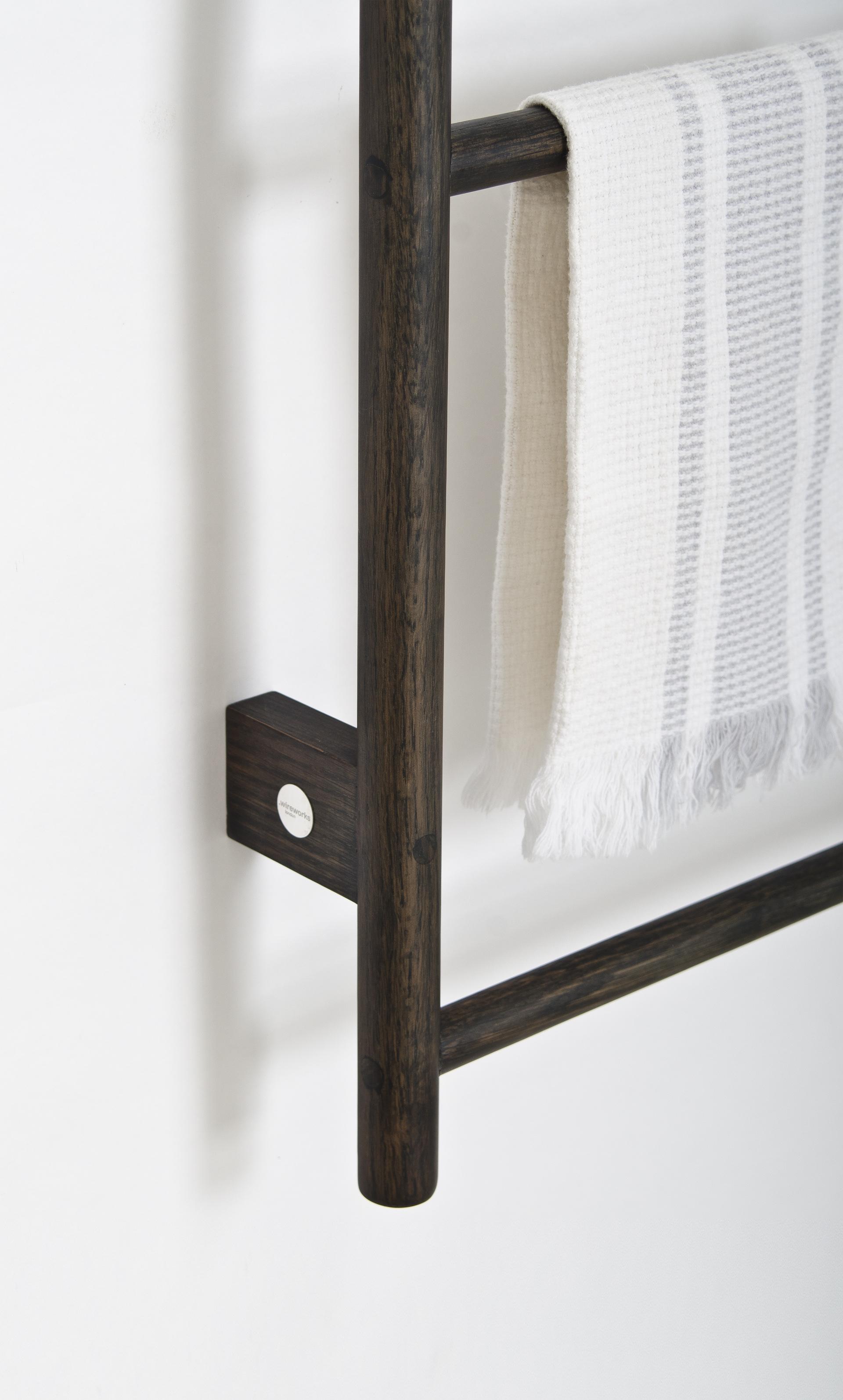 Make better use of the space you have with 'Wallbar' five rail towel ladder. Less fiddly triple folding - Wallbar is  wide enough to fit a bath sheet easily. Round rails make it easier to put towels on and take them off, no edges to snag or catch. Rails are stepped off the wall making room for thicker towels and allowing the air to circulate better, drying them more quickly. Staggered spacing uses the space more efficiently. Smaller hand towels and full size bath towels can both be stored together.