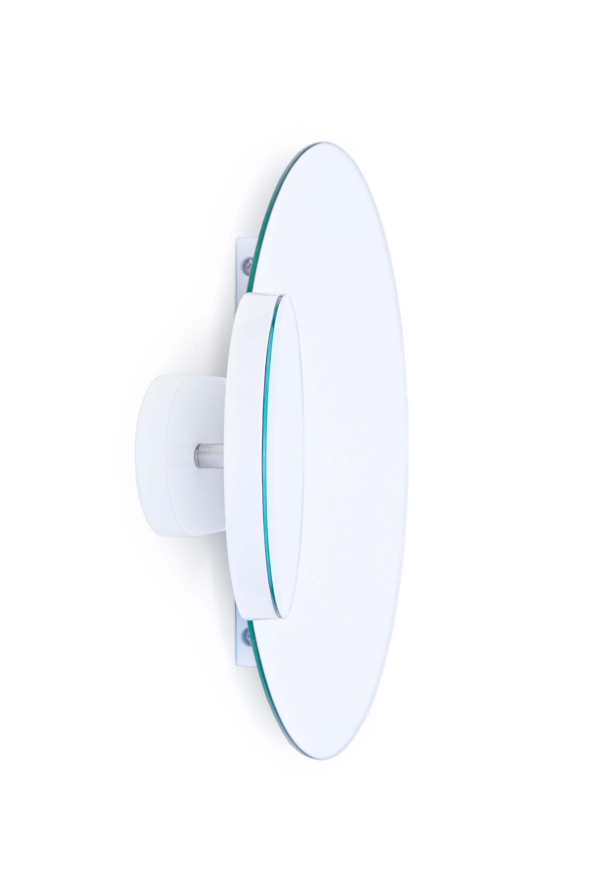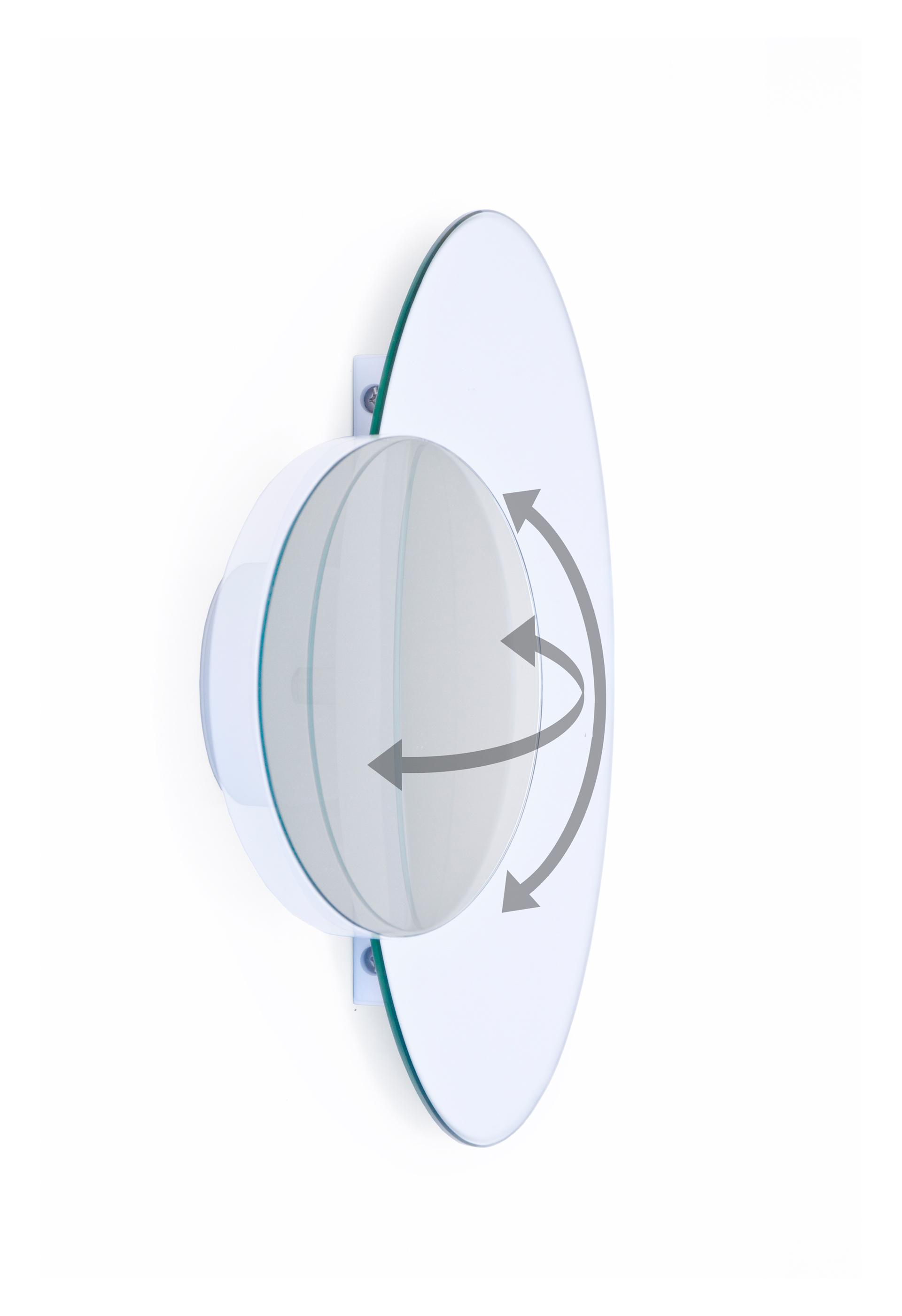 The magnifying mirror orbits the plain mirror and can be fixed at any point during installation for either left or right hand viewing. Concealed fixings give a seamless look.